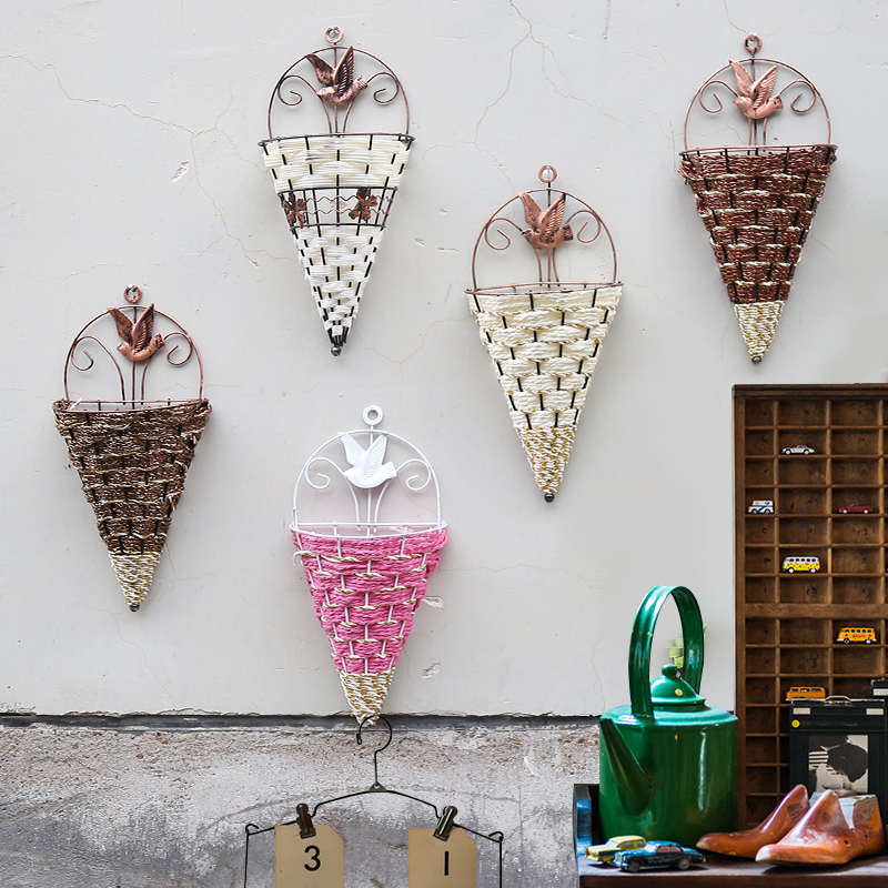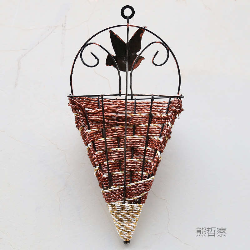 仿真花瓶花盆花篮壁挂铁艺花篮藤编壁挂花器装饰假花草编藤编花艺
