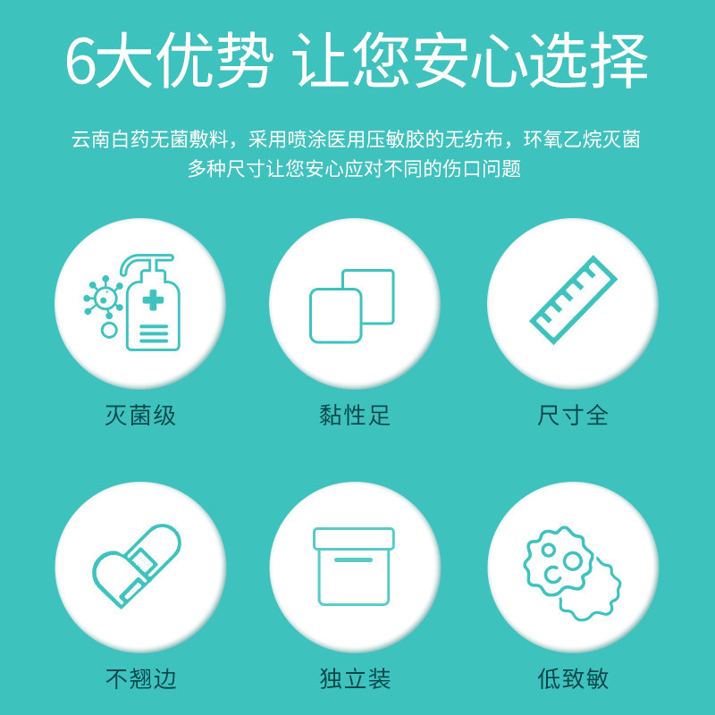 云南白药医用无菌敷料贴大号纱布块游泳私密贴防水透气创可贴贴敷