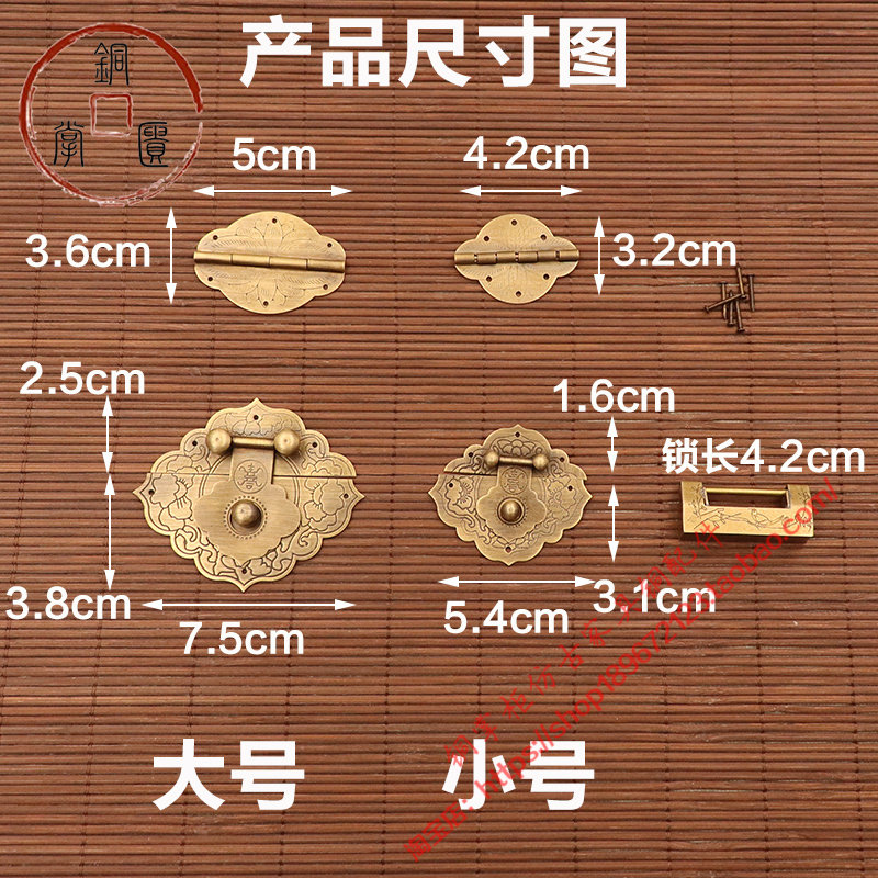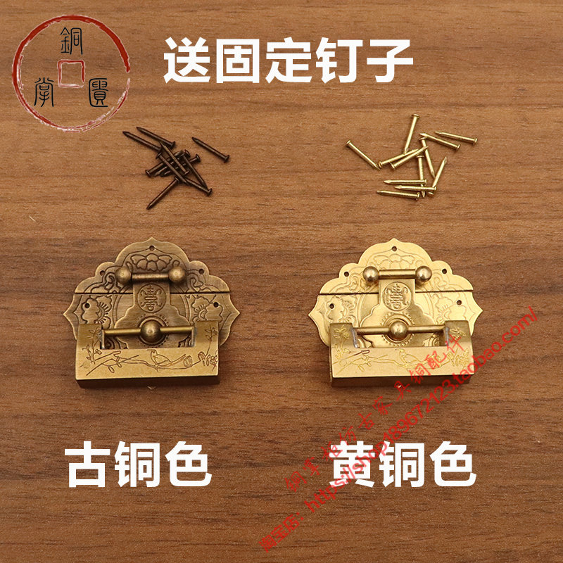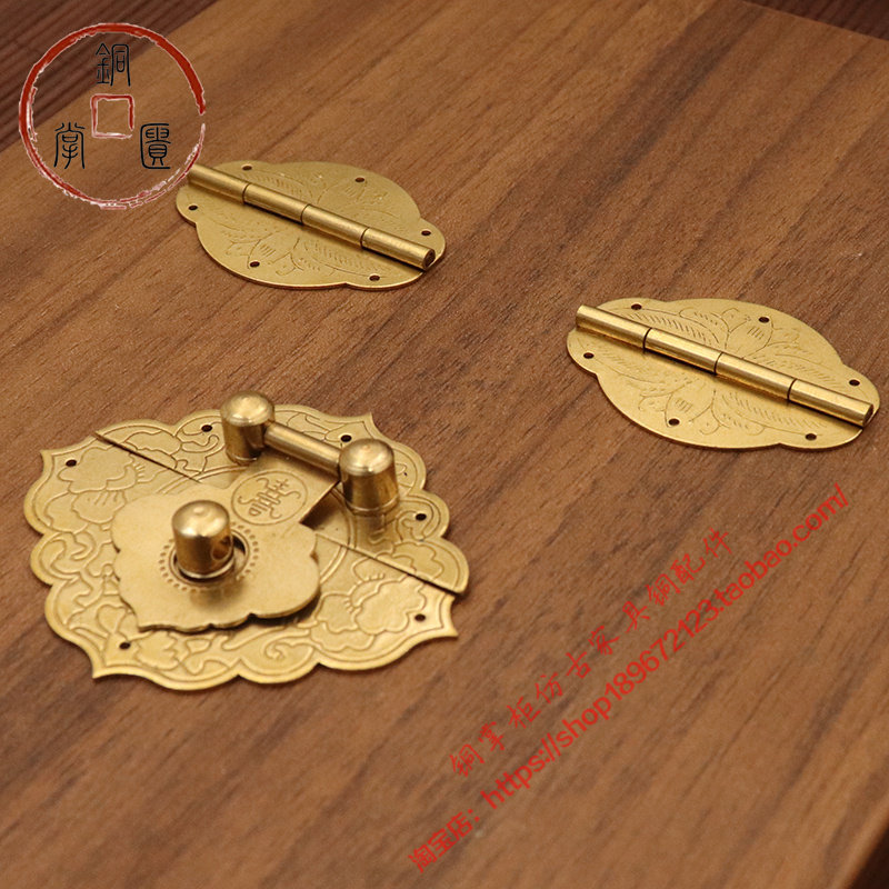 樟木箱子铜箱牌首饰盒纯铜箱扣木盒搭扣小锁鼻成套箱子仿古铜配件
