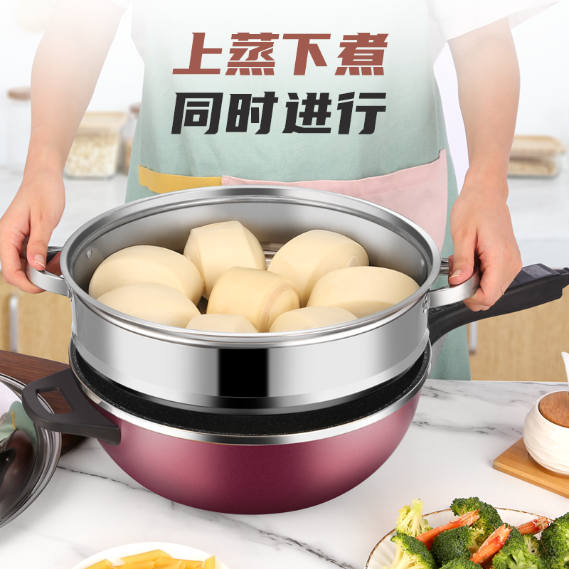 易欣电炒锅家用多功能电锅不粘麦饭石电火锅宿舍一体式插电炒菜锅