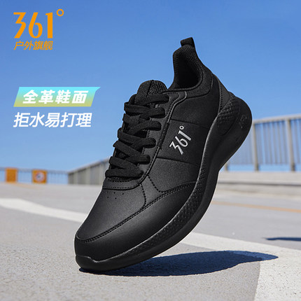 361男鞋运动鞋男2025春秋新款革面防水减震跑步鞋子男黑色休闲鞋