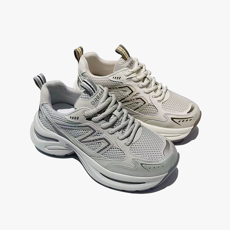 杰豪女鞋真皮网面老爹鞋女款2024年新款运动休闲鞋厚底内增高正品