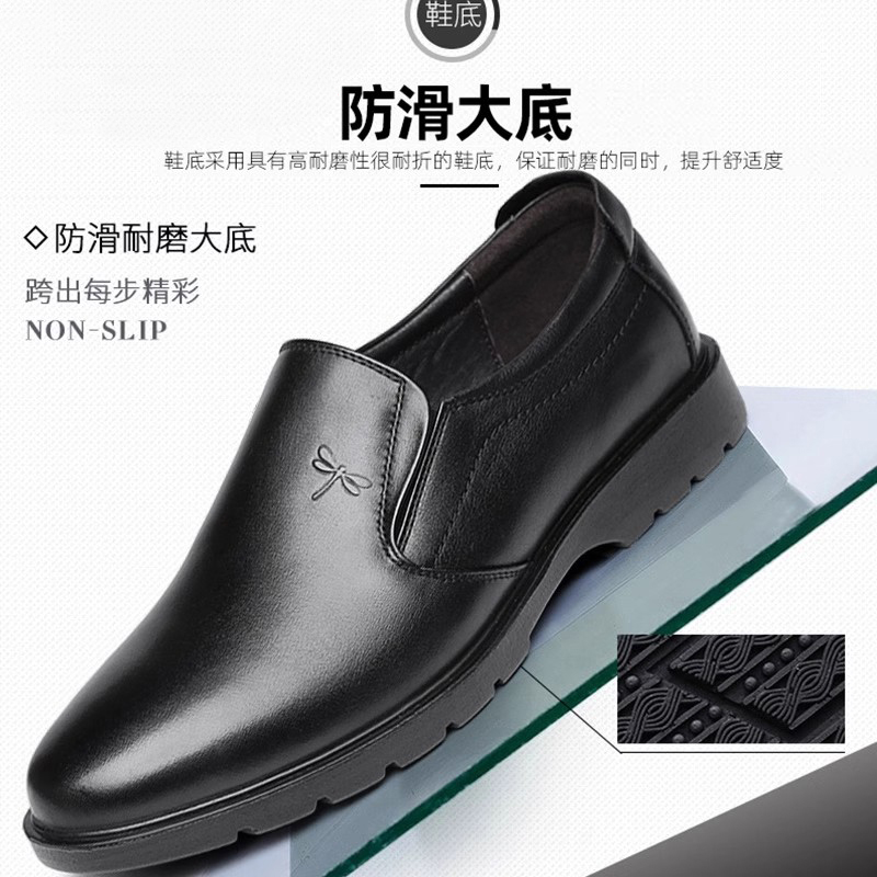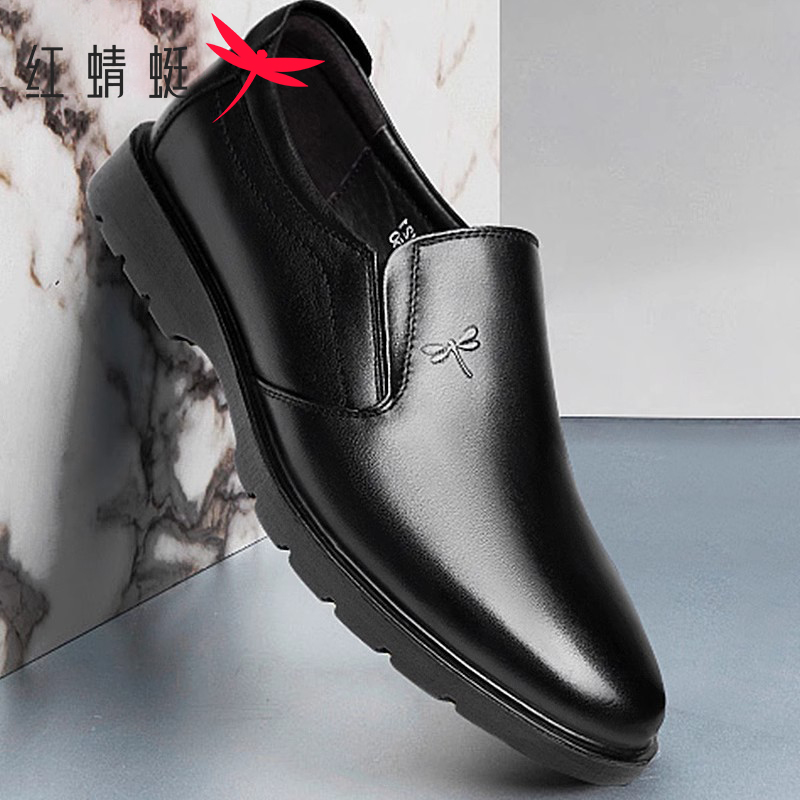 红蜻蜓爸爸皮鞋 秋季真皮软底中年人老人男士鞋子中年款休闲男鞋