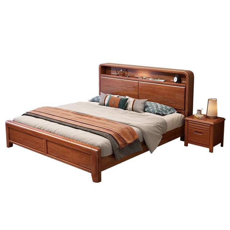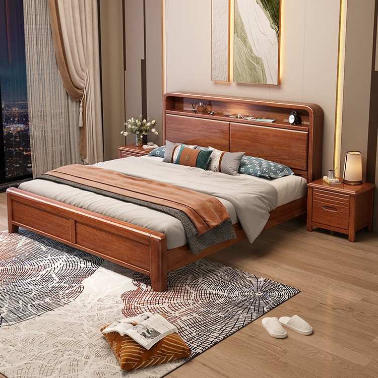 胡桃木实木床主卧双人床1.8米大床现代中式1.5工厂直销可储物木床