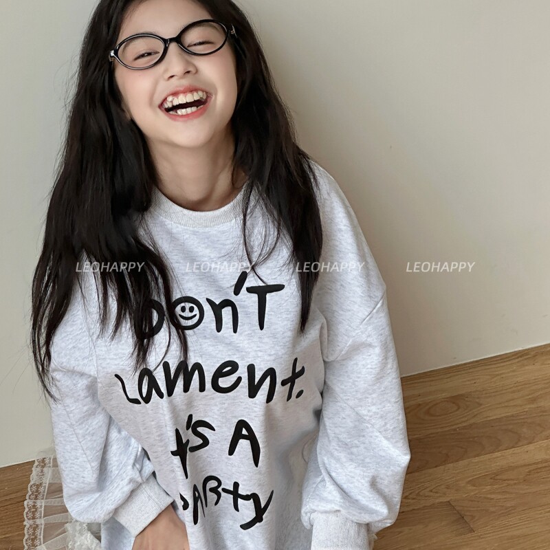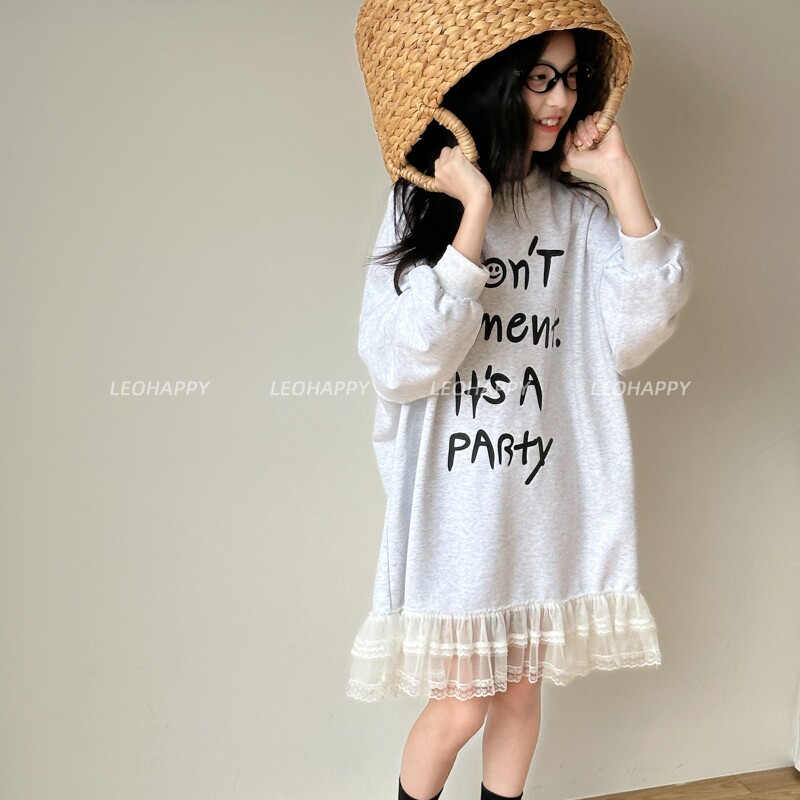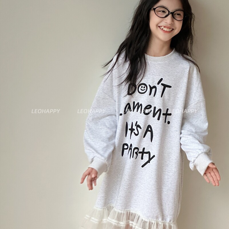 LEOHAPPY女童连衣裙春装新款儿童裙子印花卫衣裙中大童休闲裙子N