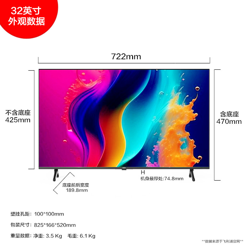 飞利浦32英寸全高清商用监视器VGA电视机HDMi监控屏显示器 2210QE