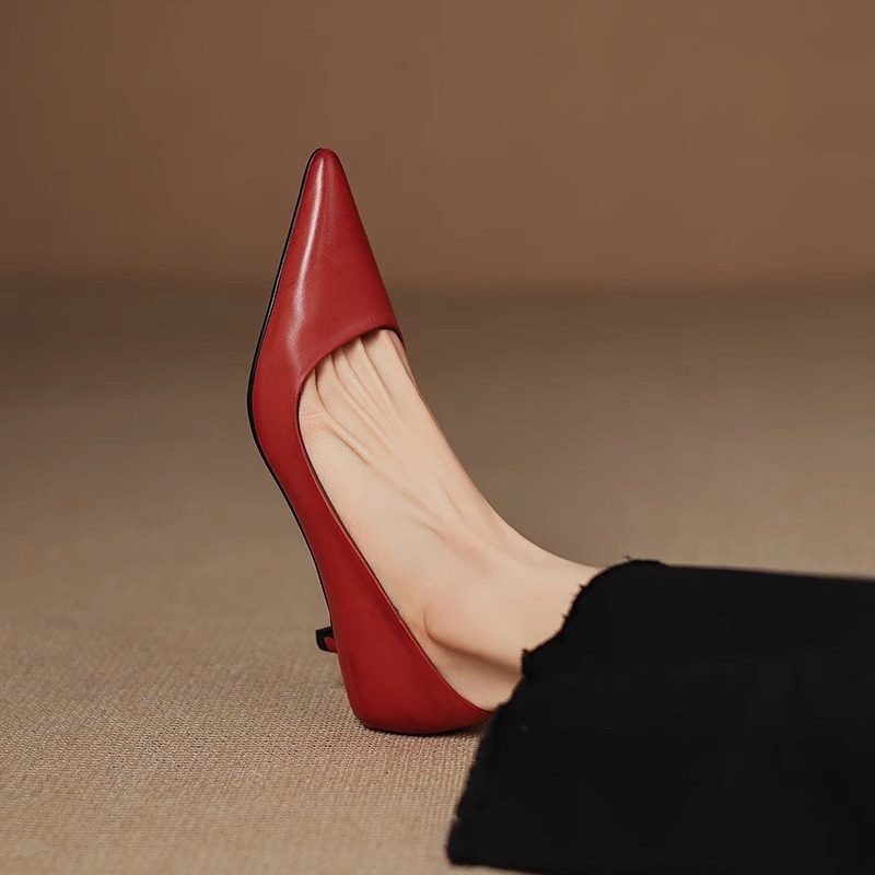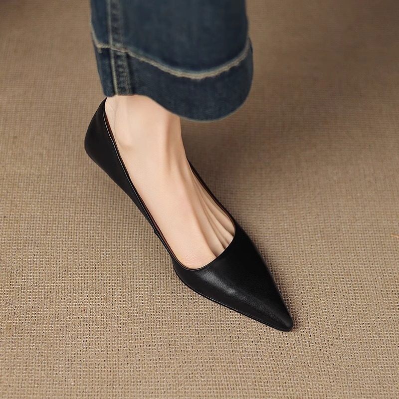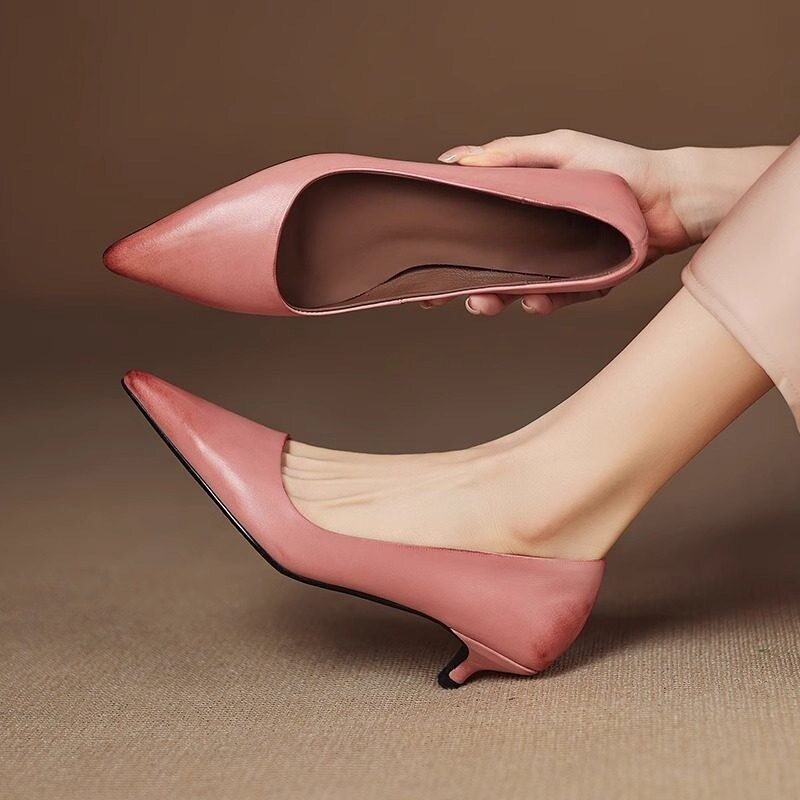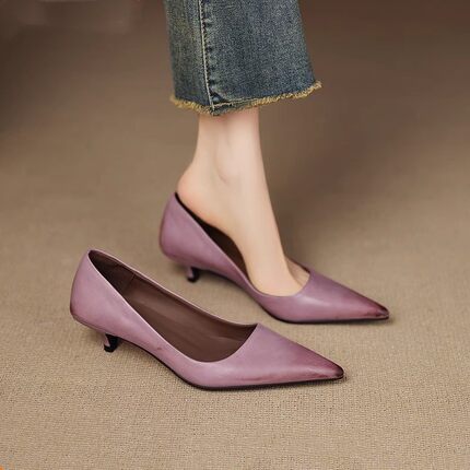 法式春秋猫跟通勤工作鞋2026新款超火紫色尖头中跟单鞋女婚鞋
