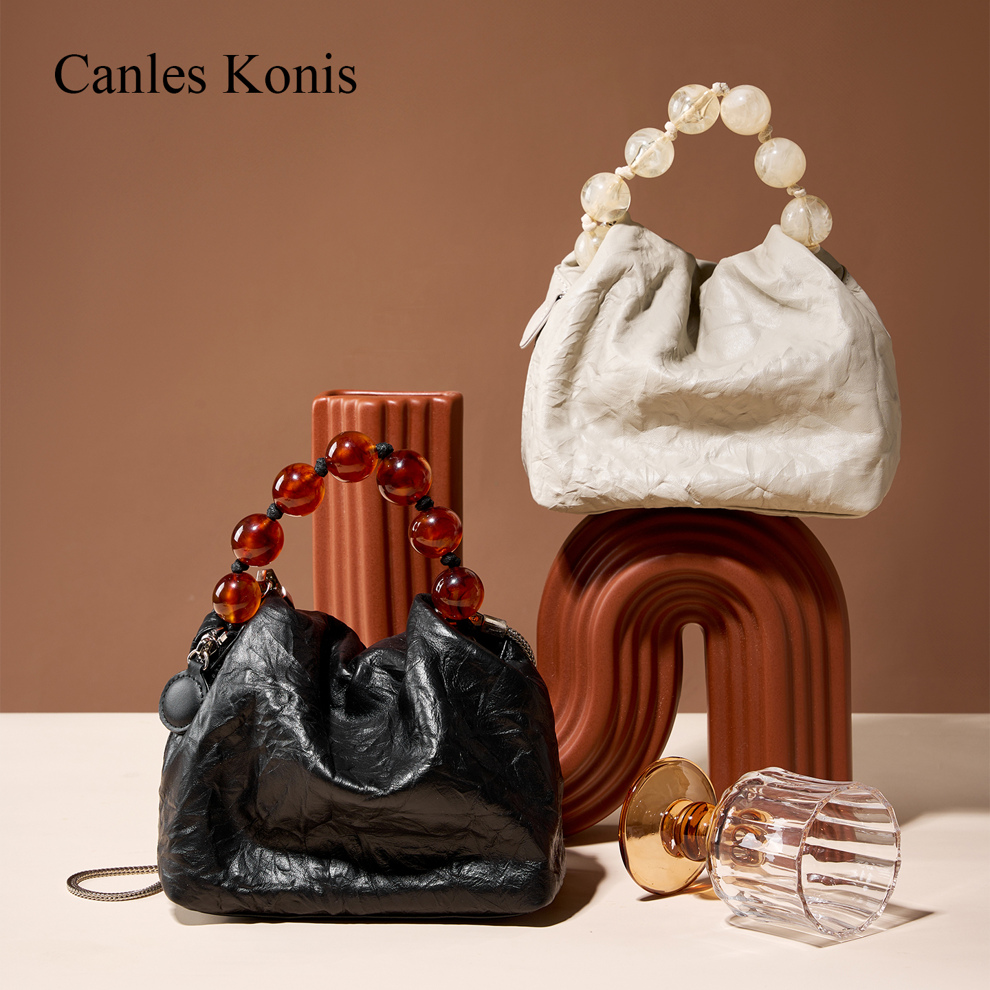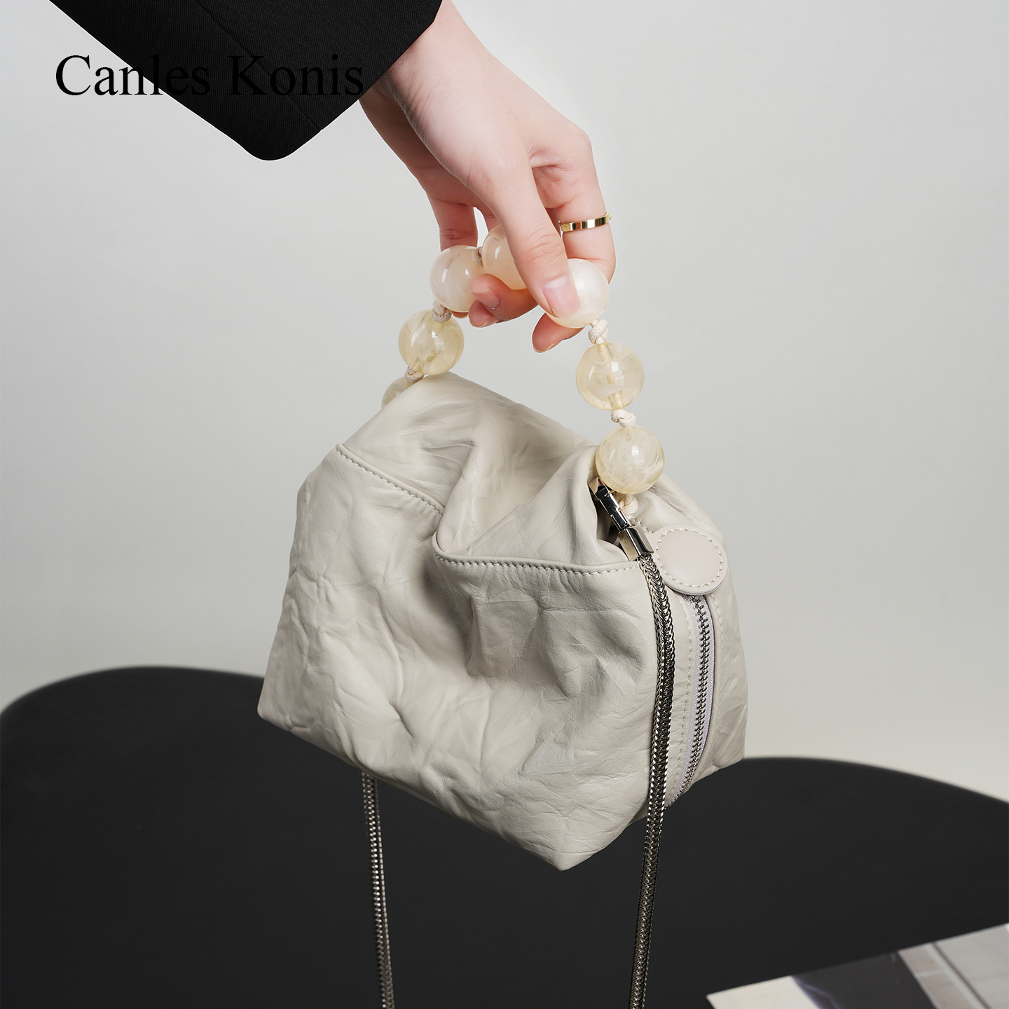 生日礼物官网Canles Konis2025新款饺子包单肩手提女包褶皱云朵包
