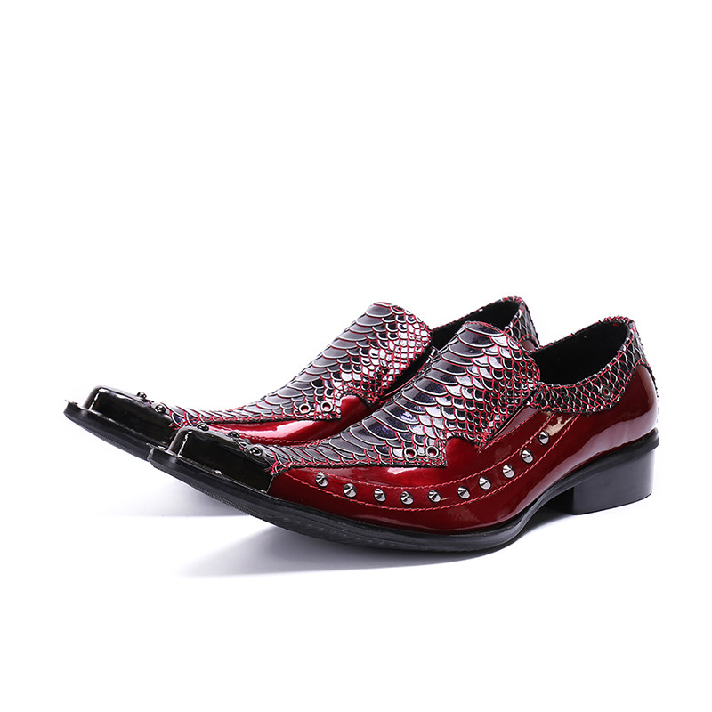 尖头潮流个性商务休闲男鞋红色外贸时尚牛皮皮鞋夏季单鞋透气潮鞋