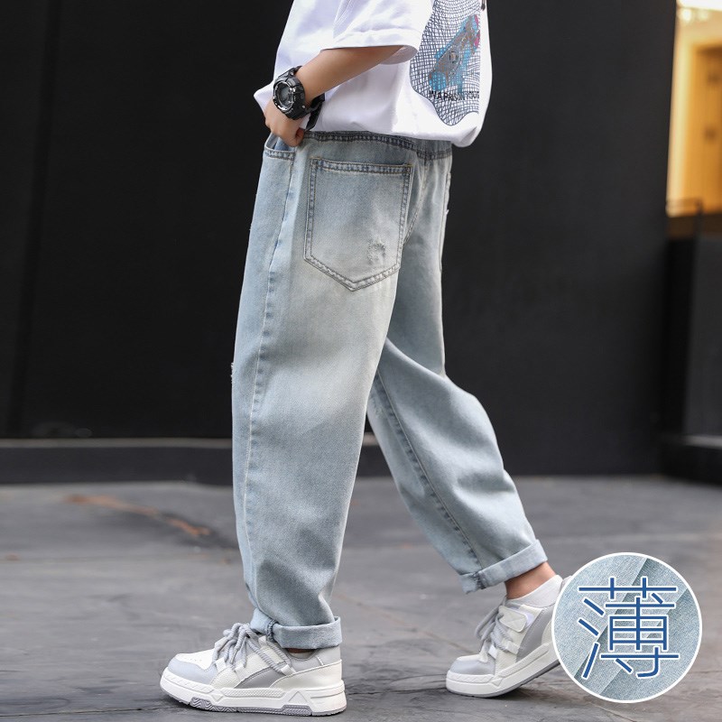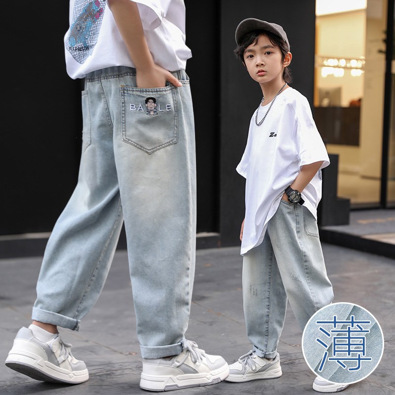 男童牛仔裤夏季薄款天丝软裤子2024新款中大儿童浅色宽松直筒长裤