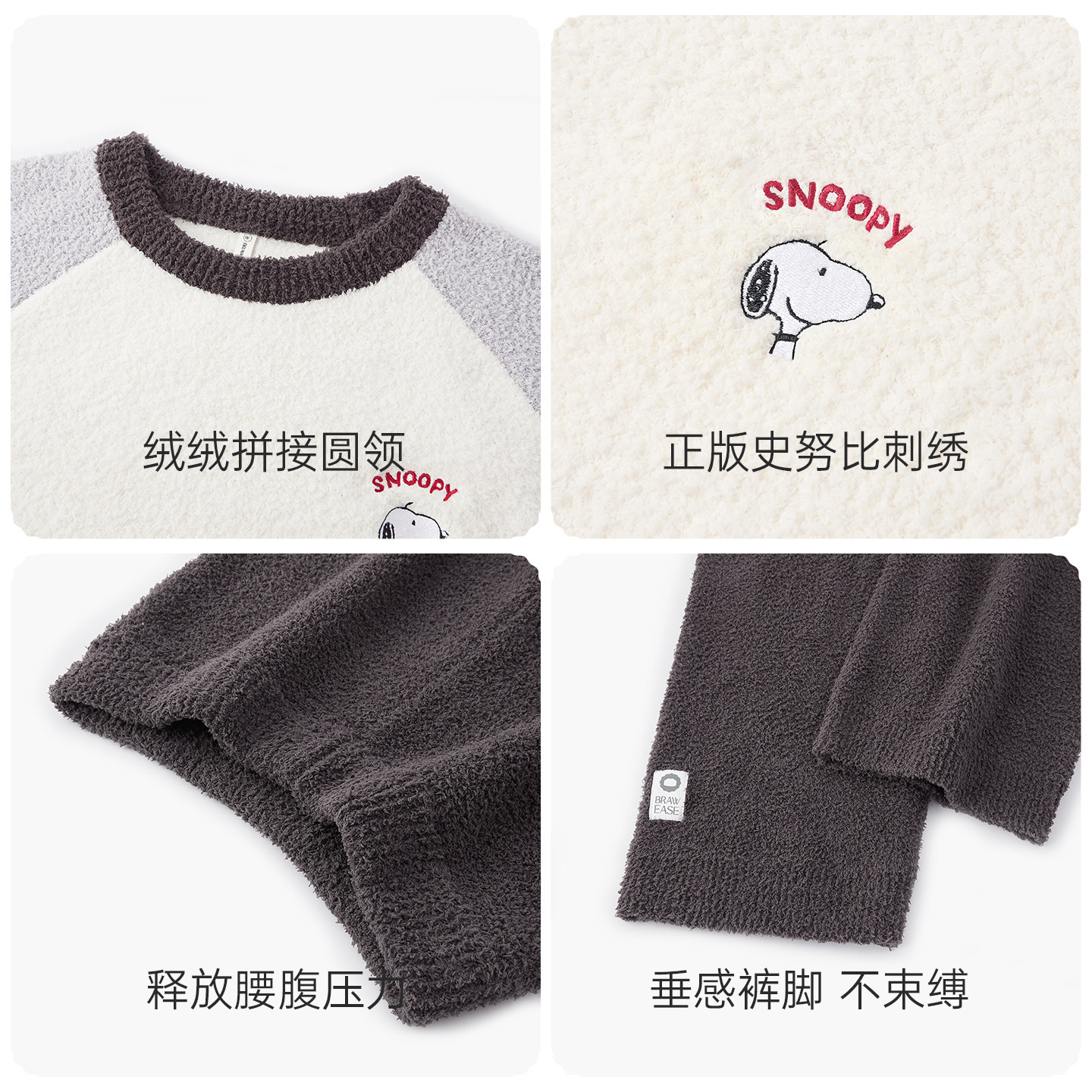 BE史努比半边绒睡衣冬撞色男情侣