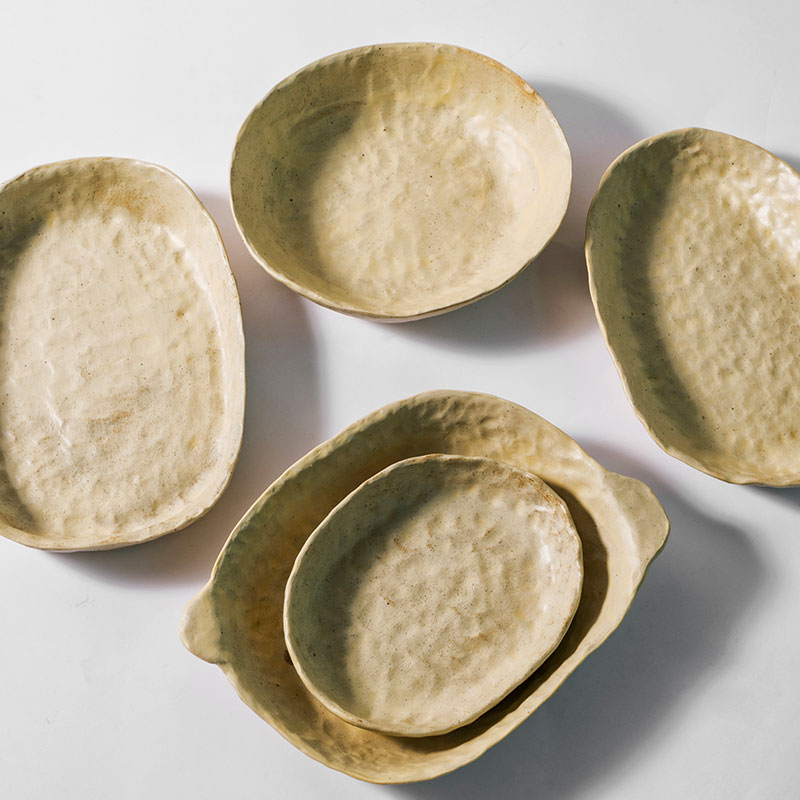 手捏粗陶复古艺术不规则餐具套装