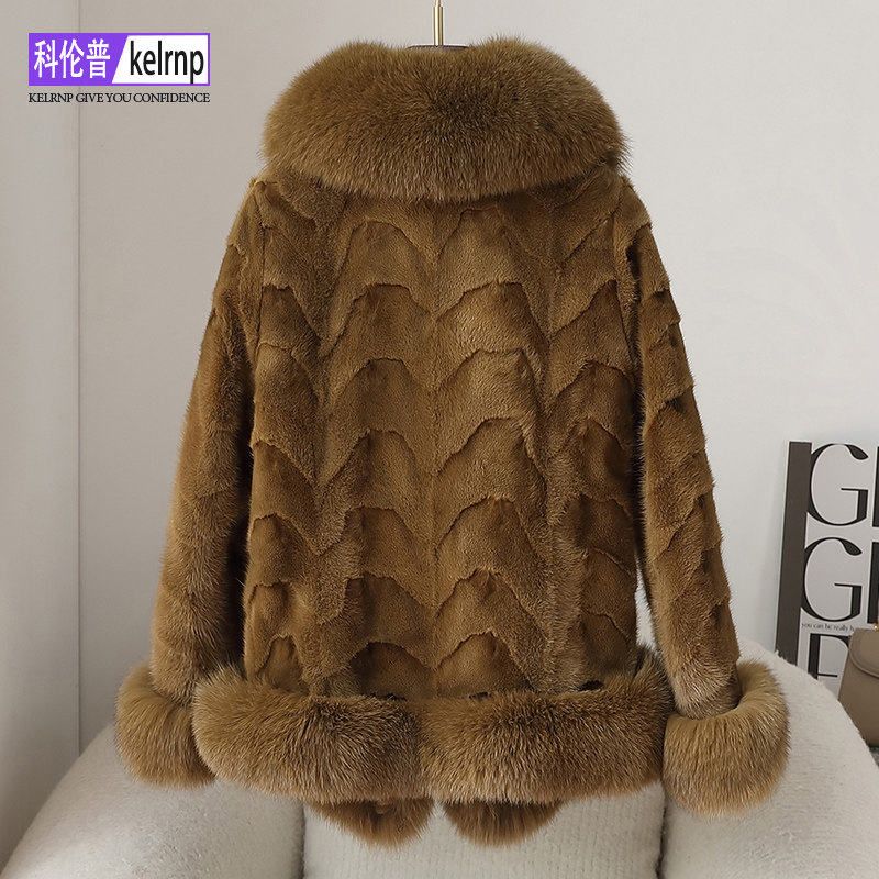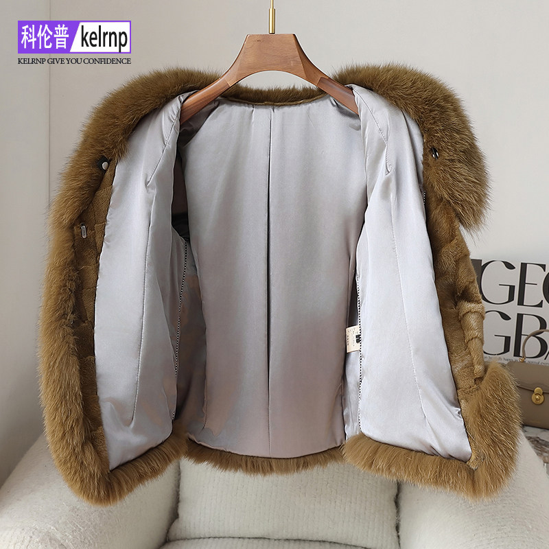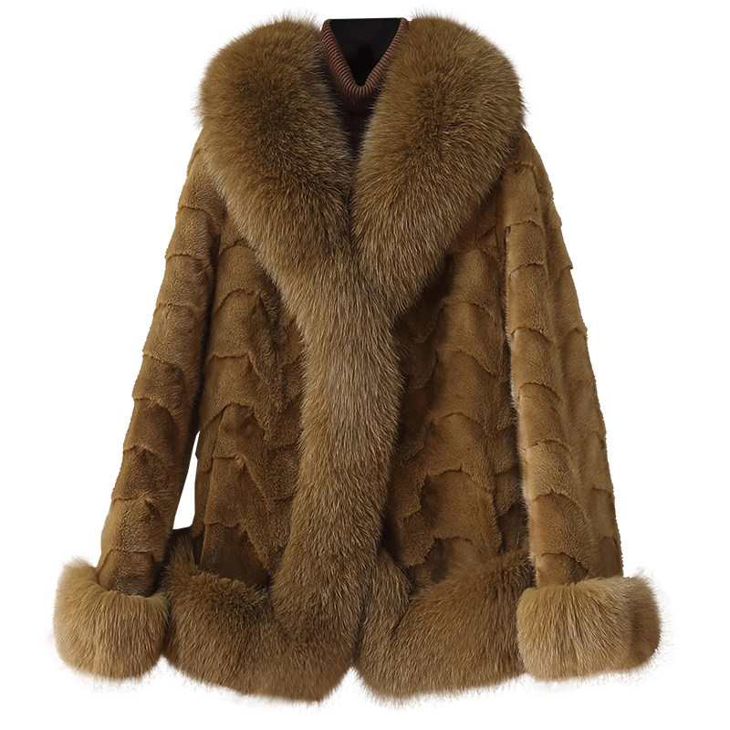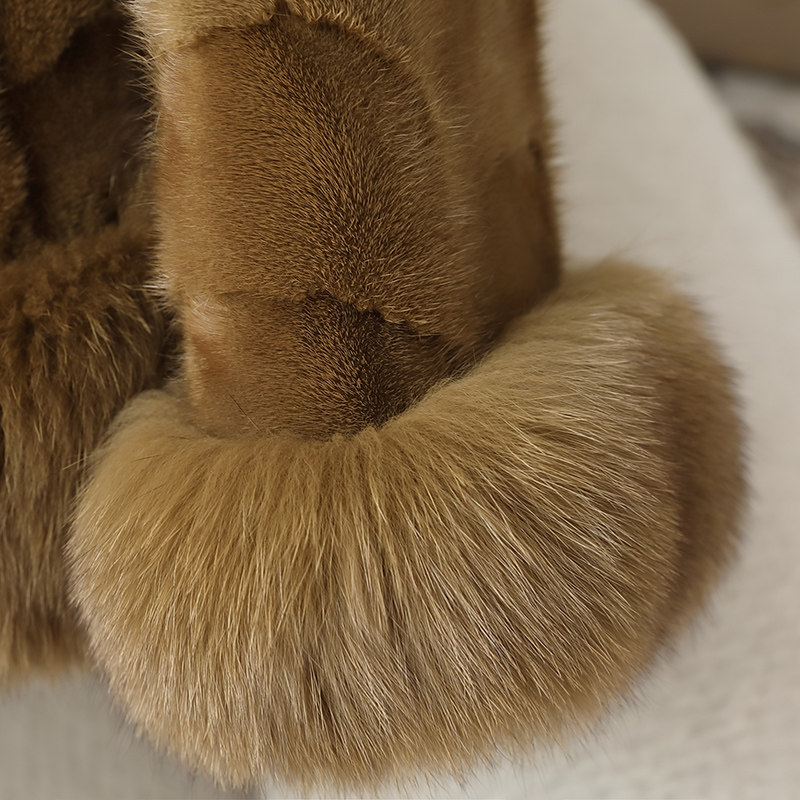 进口天鹅绒水貂毛大衣女2025新冬大牌妈妈装狐狸毛领拼貂皮草外套