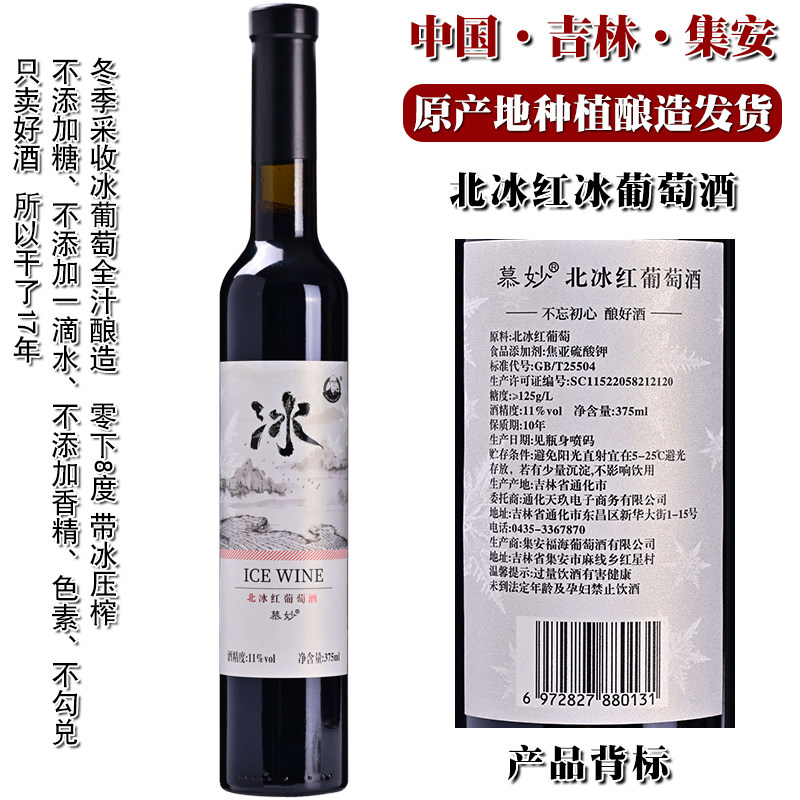 吉林通化集安慕妙北冰红冰酒威代尔冰白甜型红冰葡萄酒女