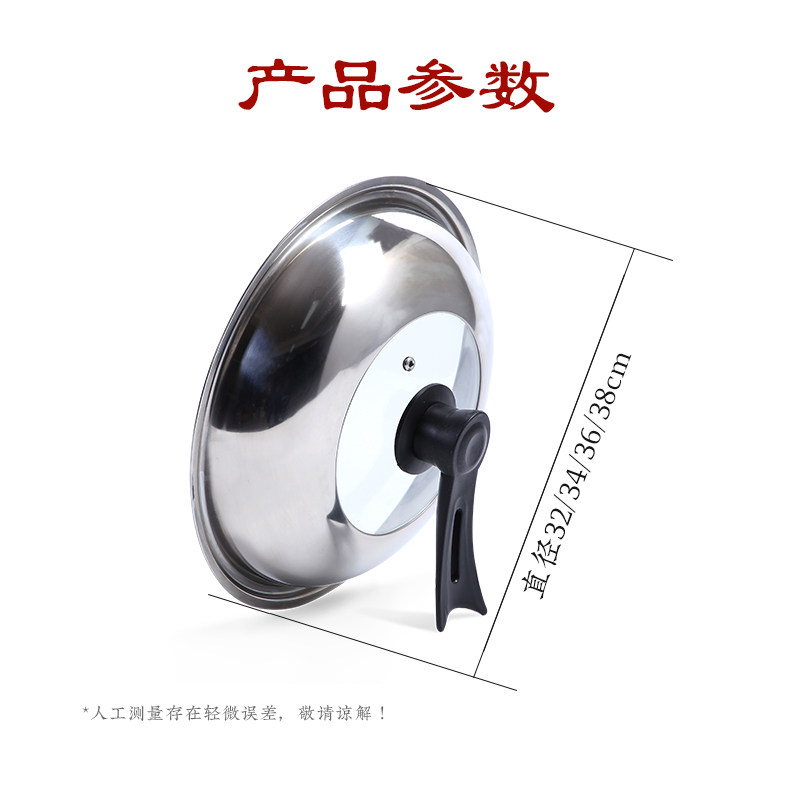 吴家 可视钢化玻璃盖不锈钢锅盖可立炒锅盖32 34 36cm