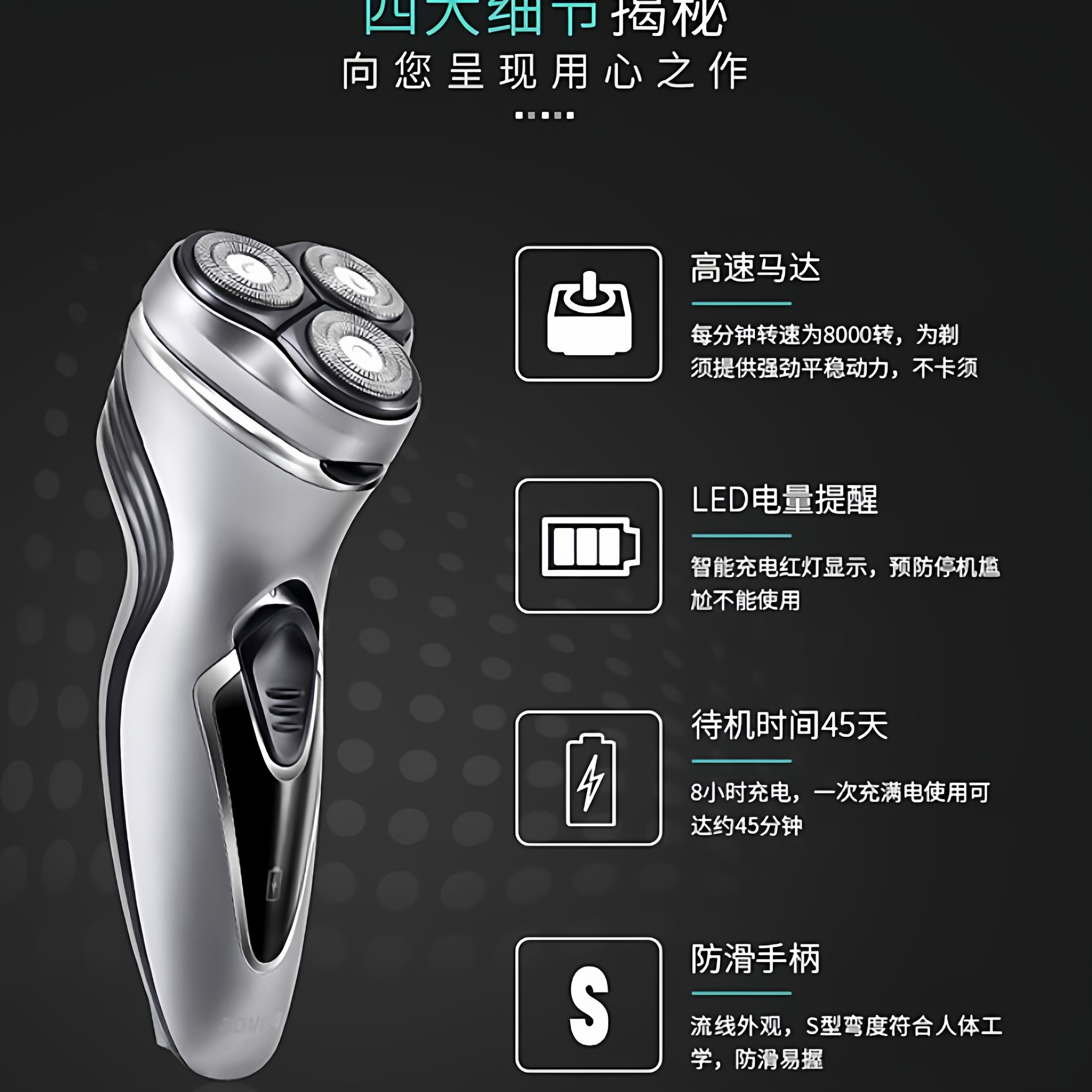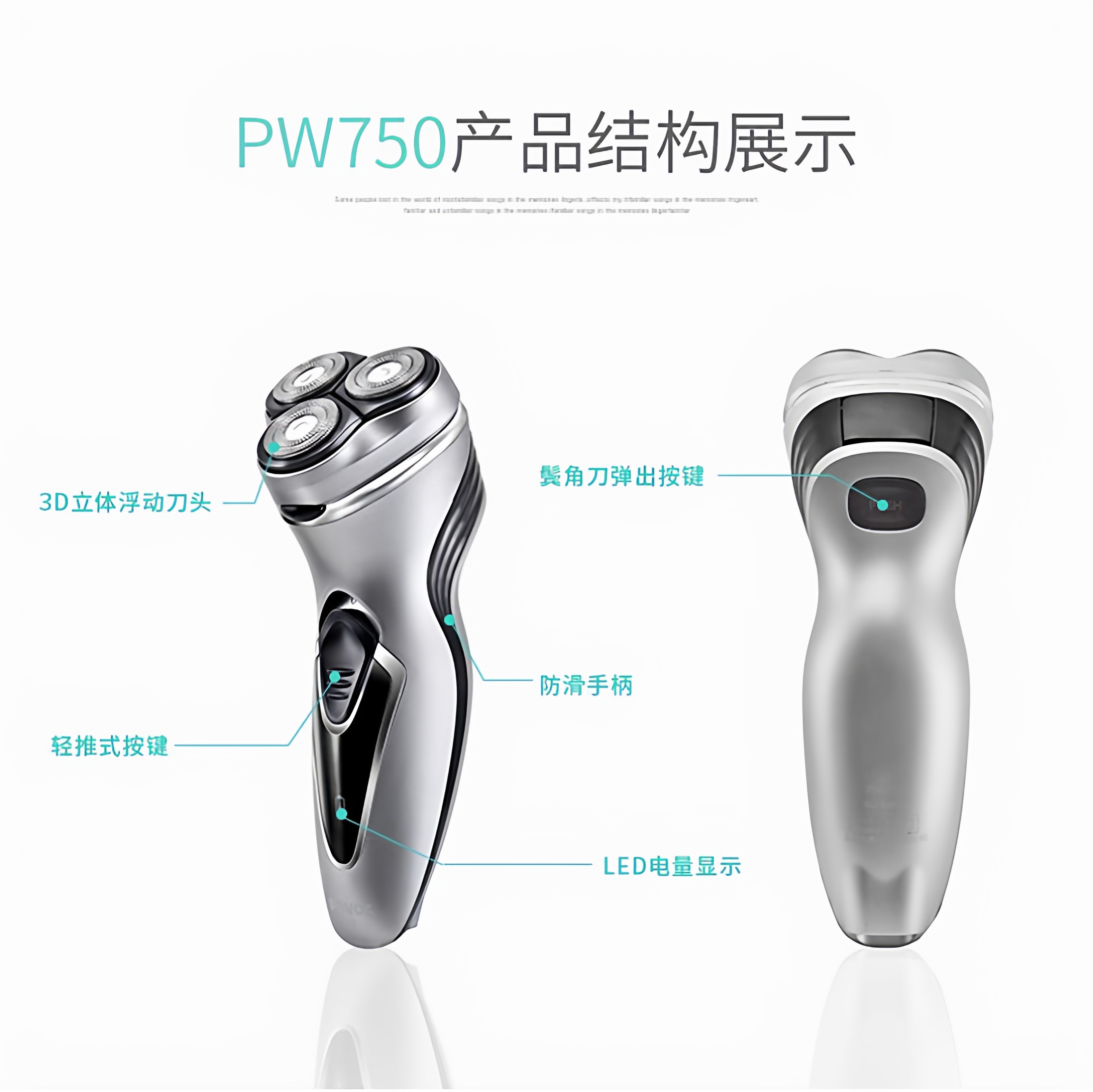 Povos/奔腾电动三刀头刮胡刀干剃型充电式男士便携剃须PW750全新
