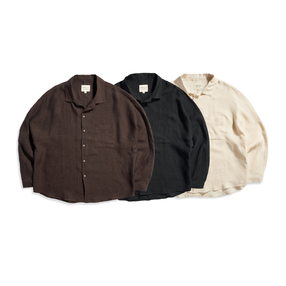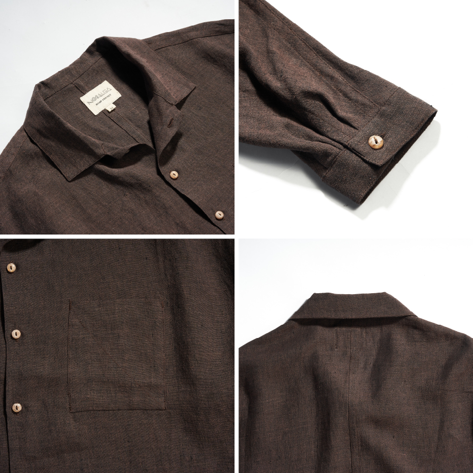 NOSALIGIA 春夏新品汉麻亚麻混纺一体袖衬衫男RADIANCE-Blue