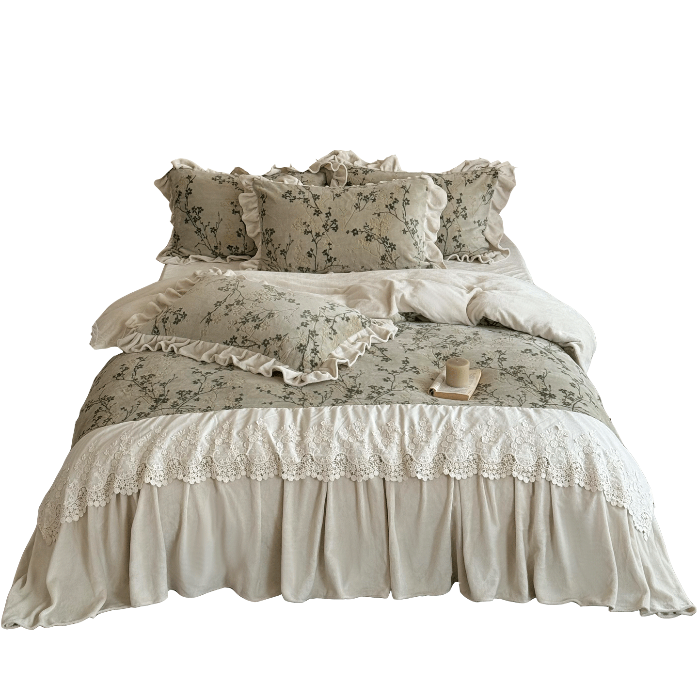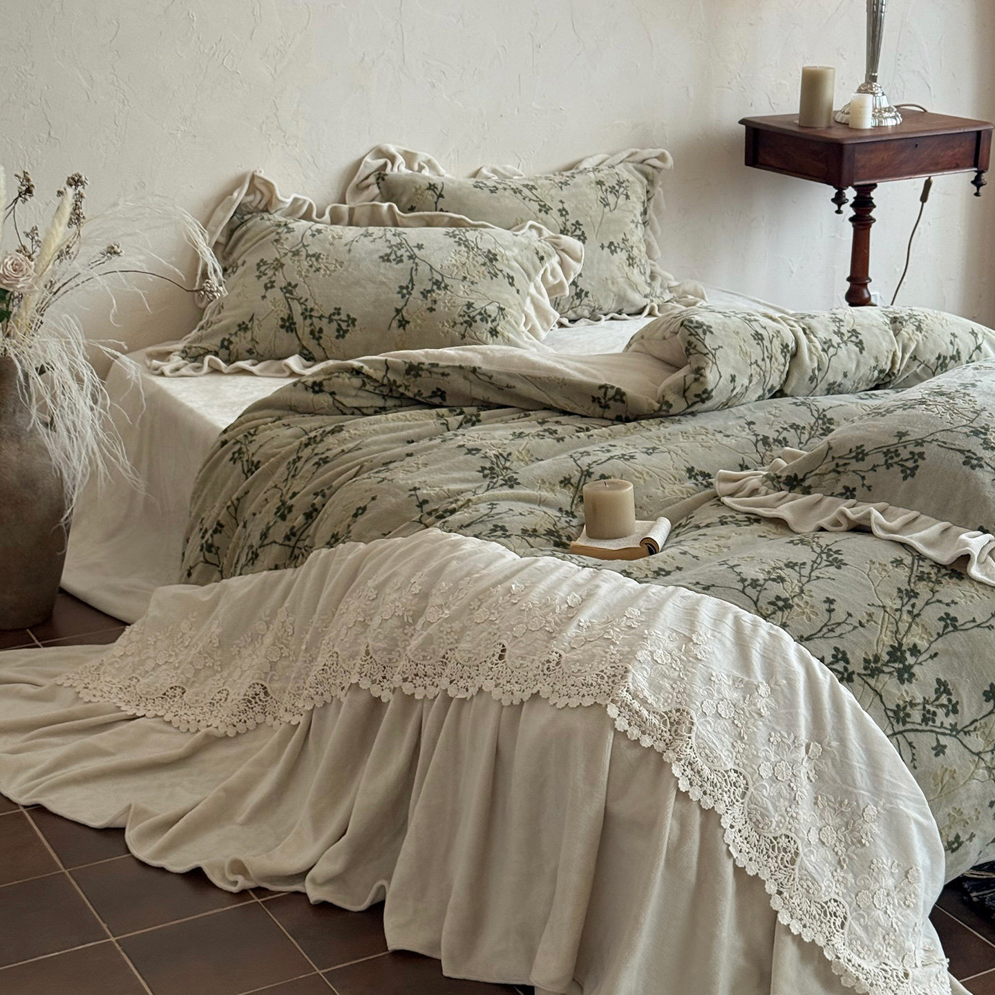 法式复古风冬季保暖牛奶绒四件套加厚珊瑚绒床单床笠花边被套床品