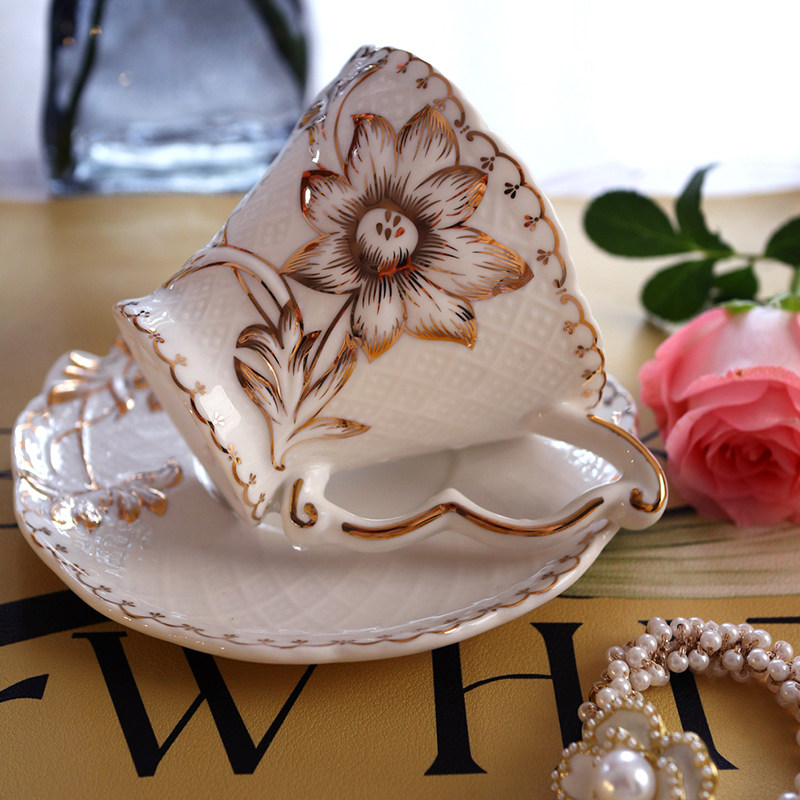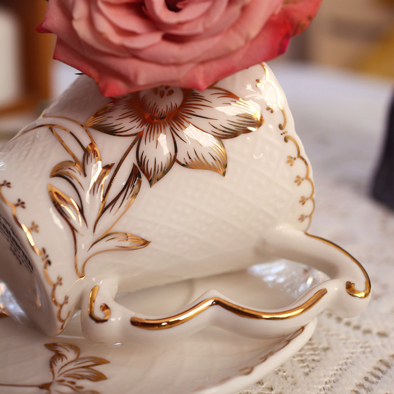 轻奢北欧复古咖啡杯碟勺套装杯子家用欧式骨瓷花茶家用英式下午茶