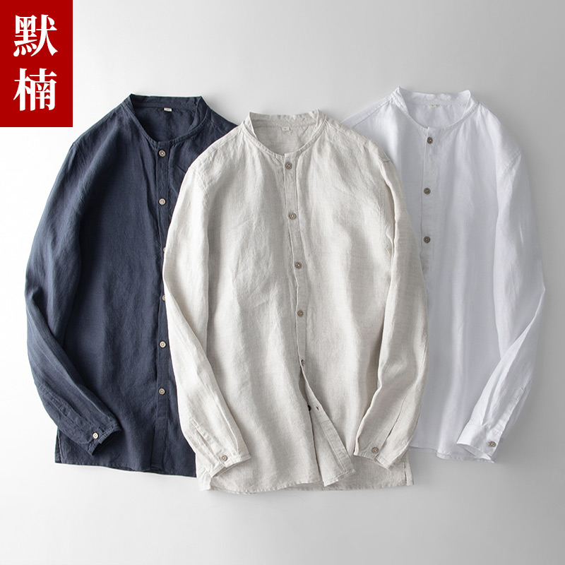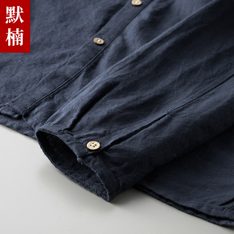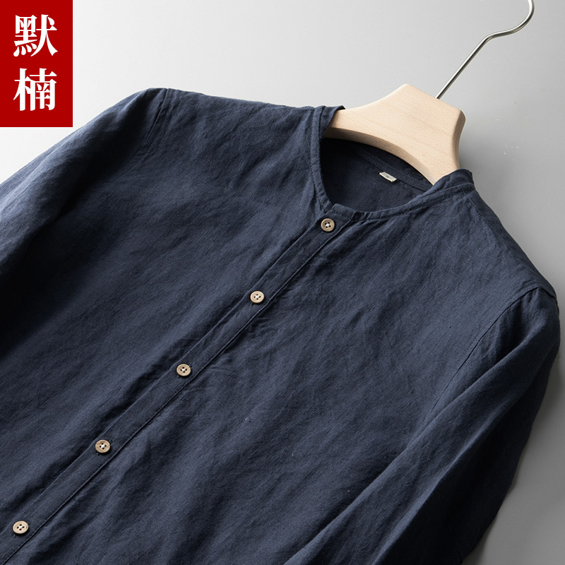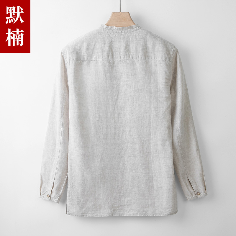 2025夏季中国风男装立领纯亚麻衬衫男长袖宽松休闲薄款棉麻衬衣潮