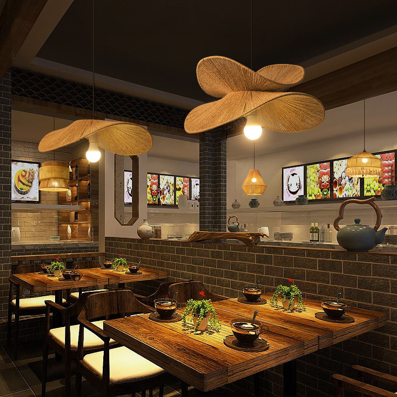中式复古风吊灯竹灯笼荷叶藤编餐桌茶室民宿客栈氛围感吊灯