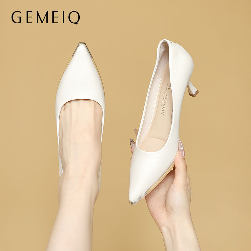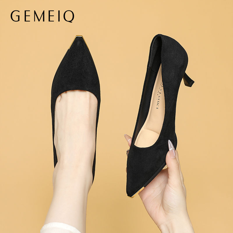 戈美其高跟鞋春秋款尖头浅口气质细跟女鞋职业通勤工作鞋百搭单鞋