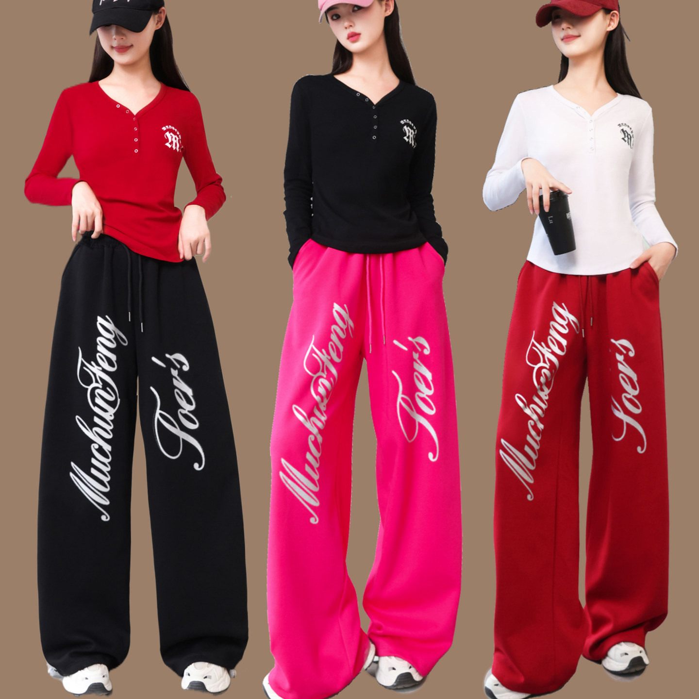 广场舞服装新款曳步舞运动套装秋冬时尚加厚伞兵裤宽松舞蹈长裤女