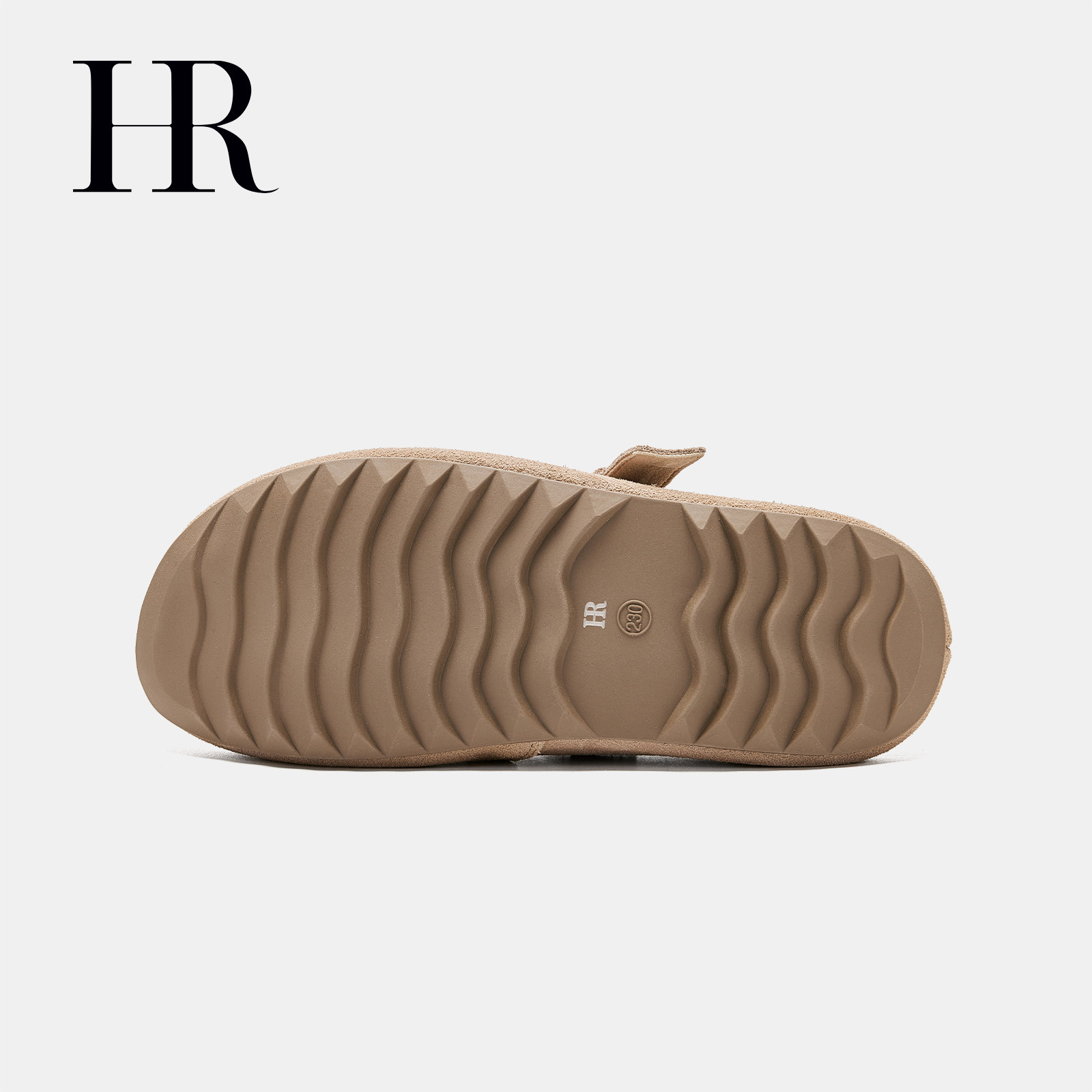 HR赫莲娜女鞋子2025秋季新款勃肯鞋平底一脚蹬复古牛皮两穿单鞋