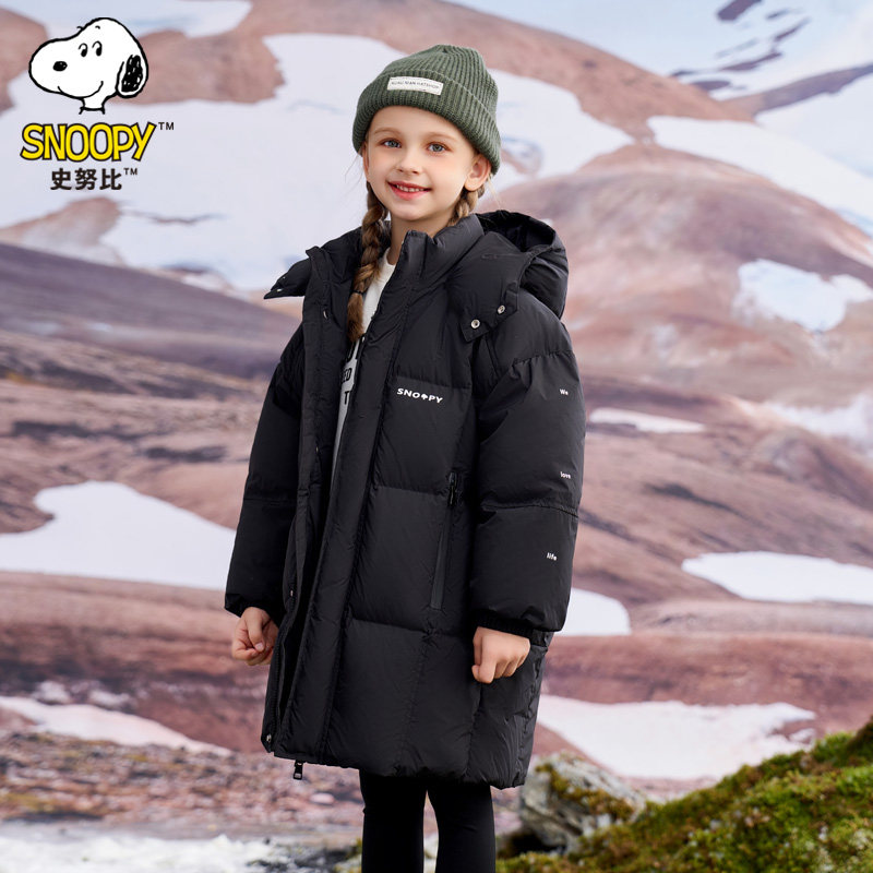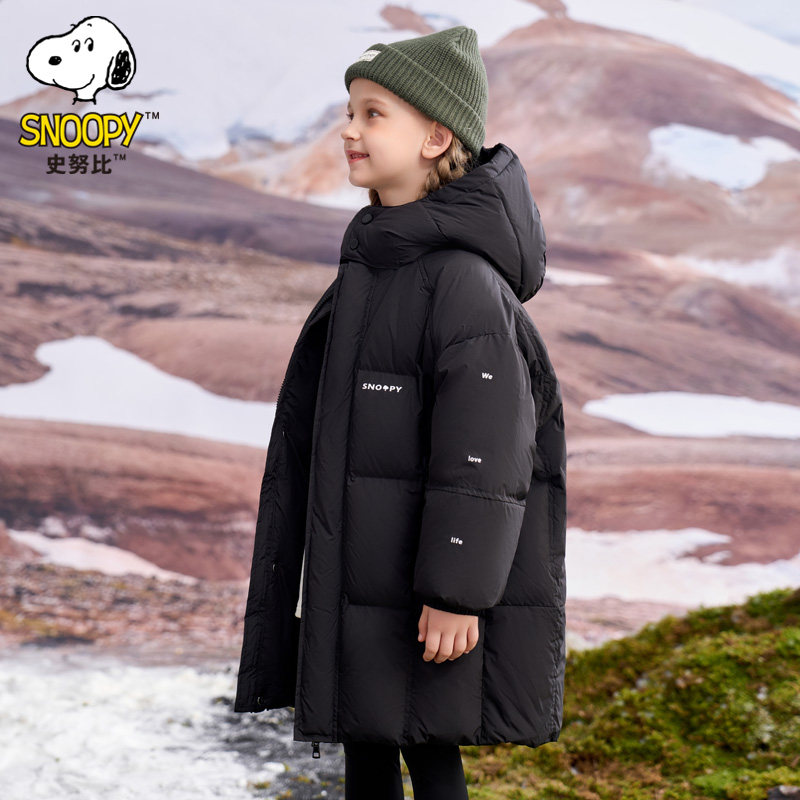 史努比儿童装羽绒服加厚2025新款中长款中大童冬季连帽保暖外套