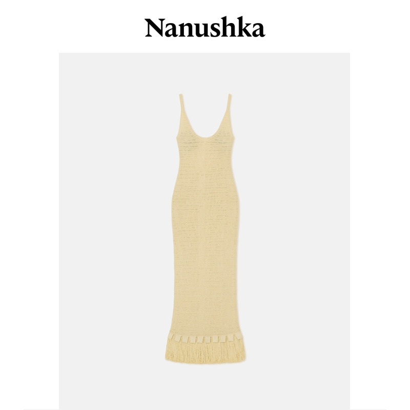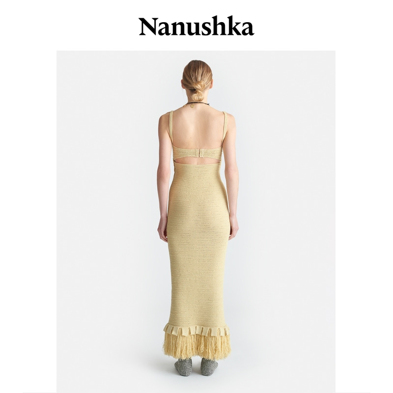 【秋冬新品】NANUSHKA 女士 ALONA 黄色U领露背针织吊带连衣裙