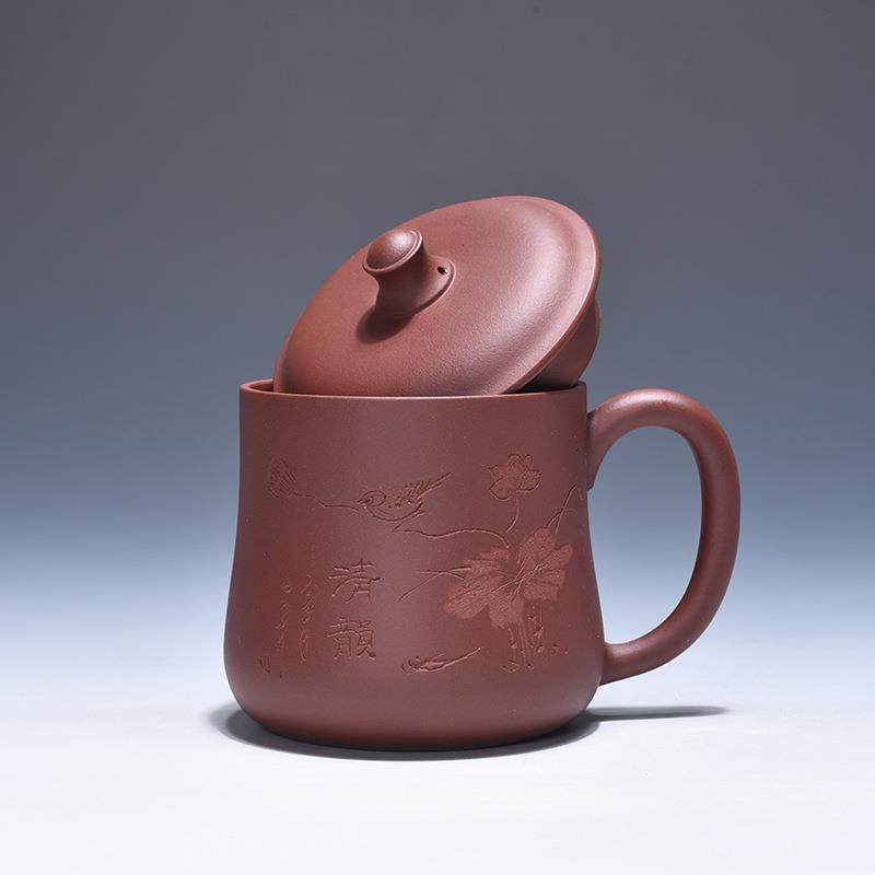 宜兴紫砂办公室茶杯盖杯纯全手工泡茶杯紫泥原料紫砂茶杯茶具
