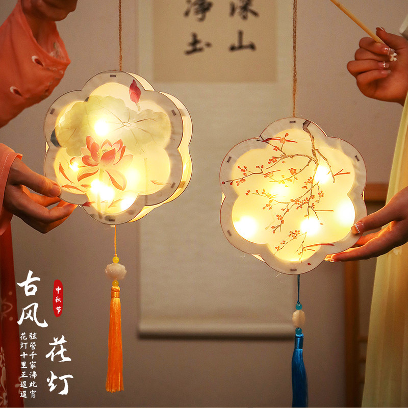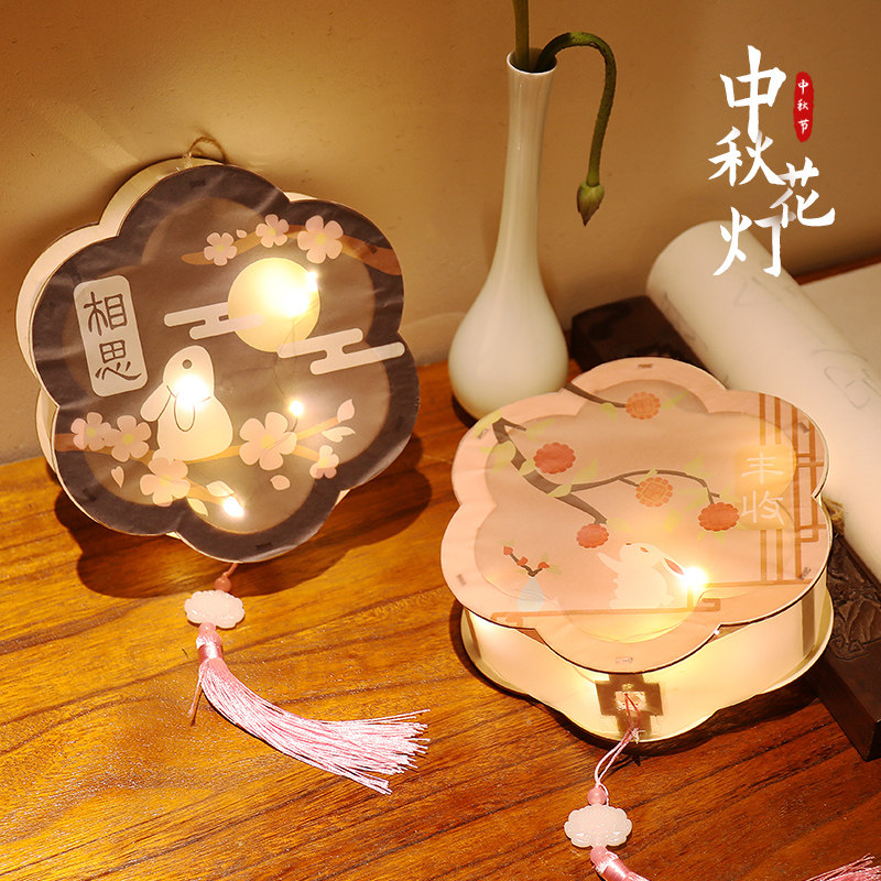 元宵节花灯儿童手提手提发光灯笼手工兔子灯DIY材料包古风灯 定制