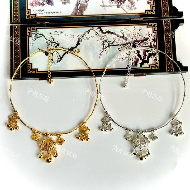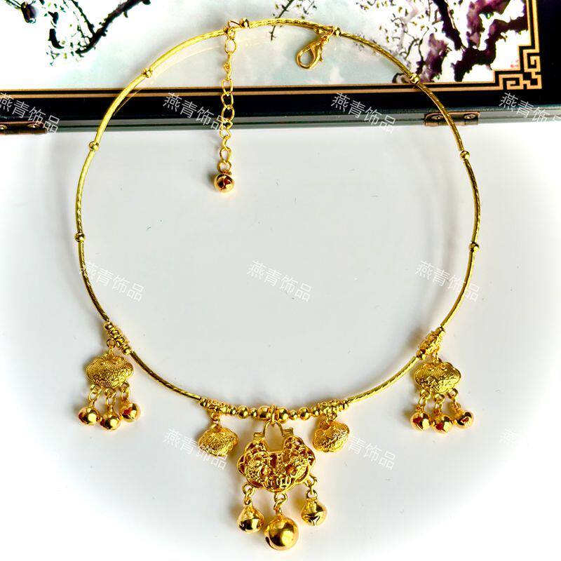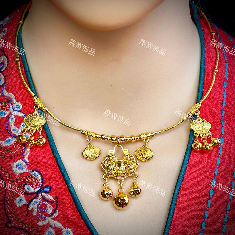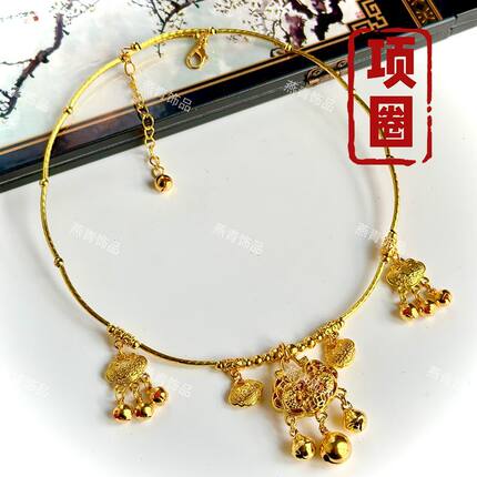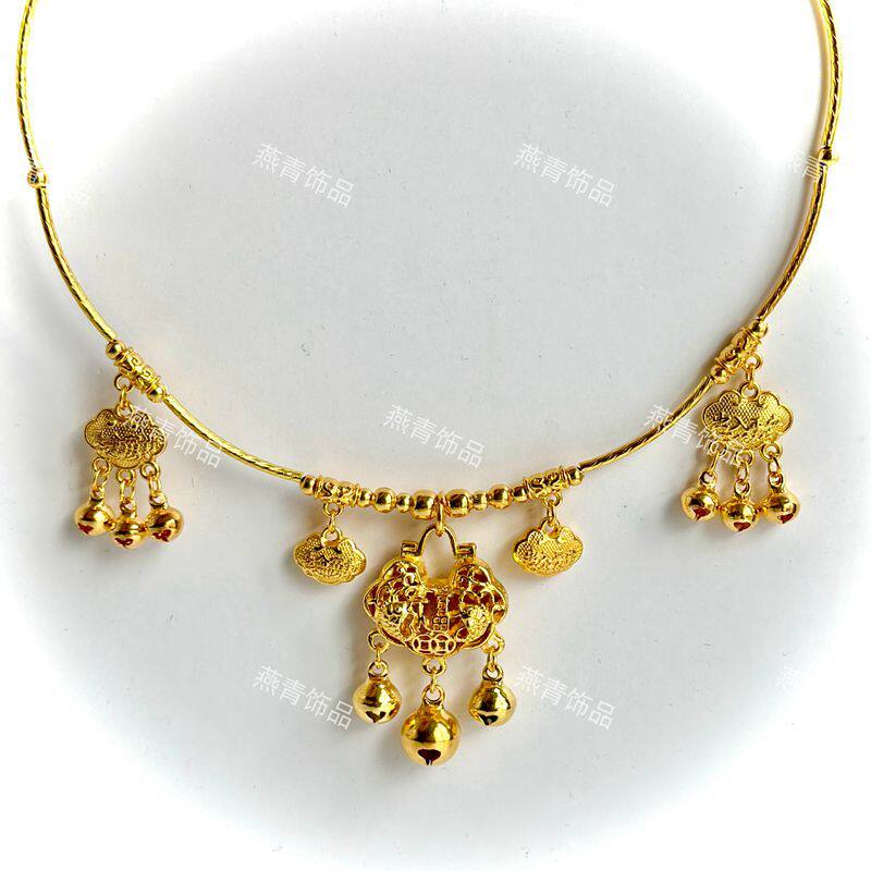 中国风汉服儿童成人款颈链项圈饰品金银色铃铛镂空长命锁项链女
