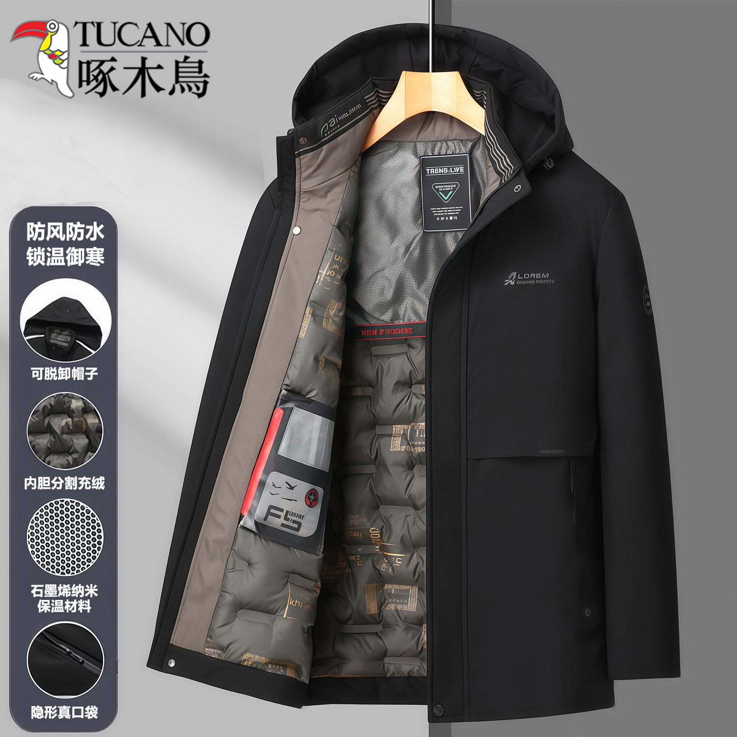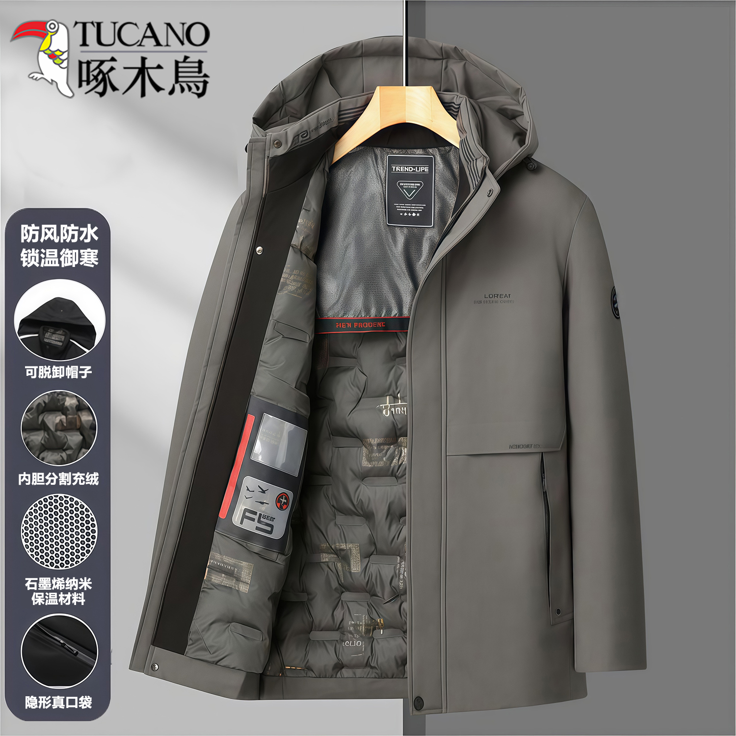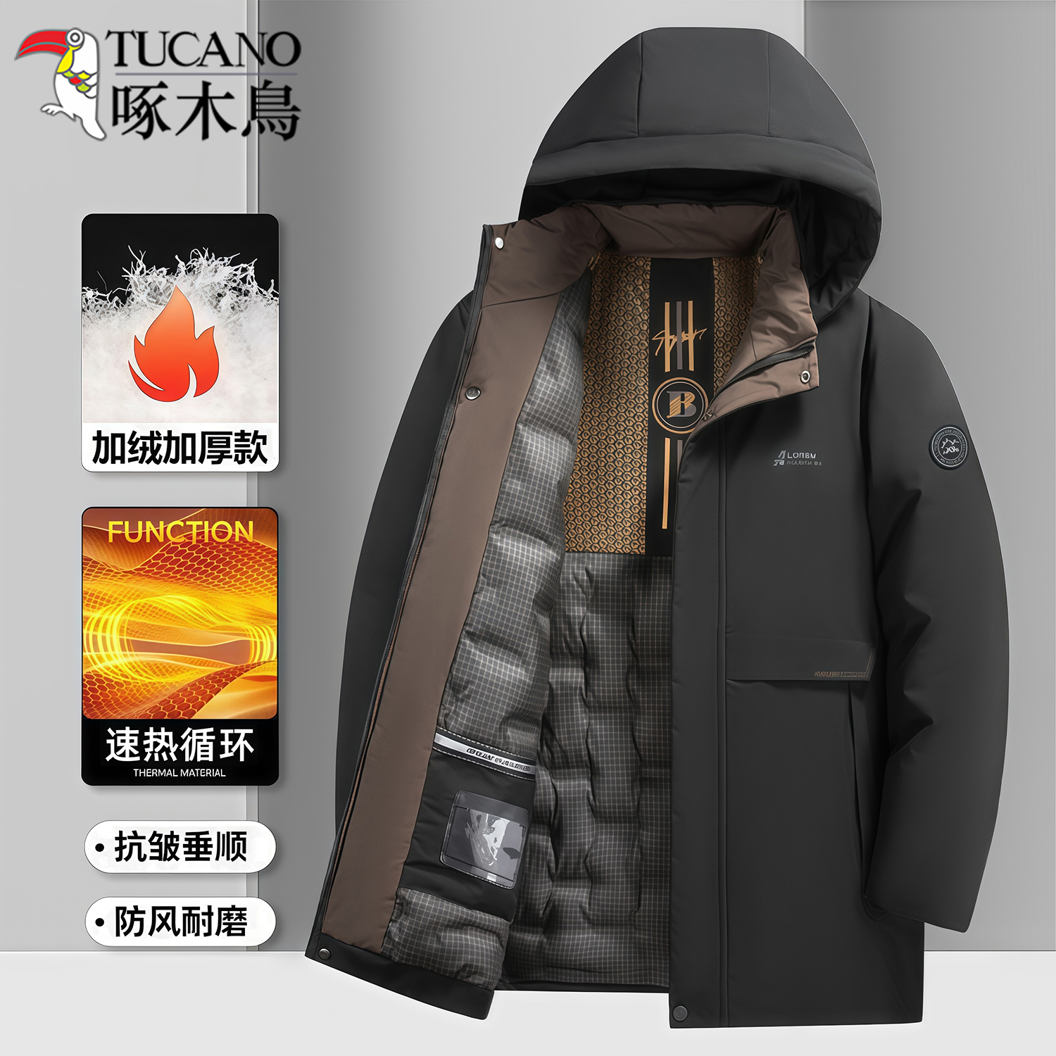 啄木鸟中老年棉衣男士冬季中长款加绒加厚爸爸冬装外套羽绒棉服