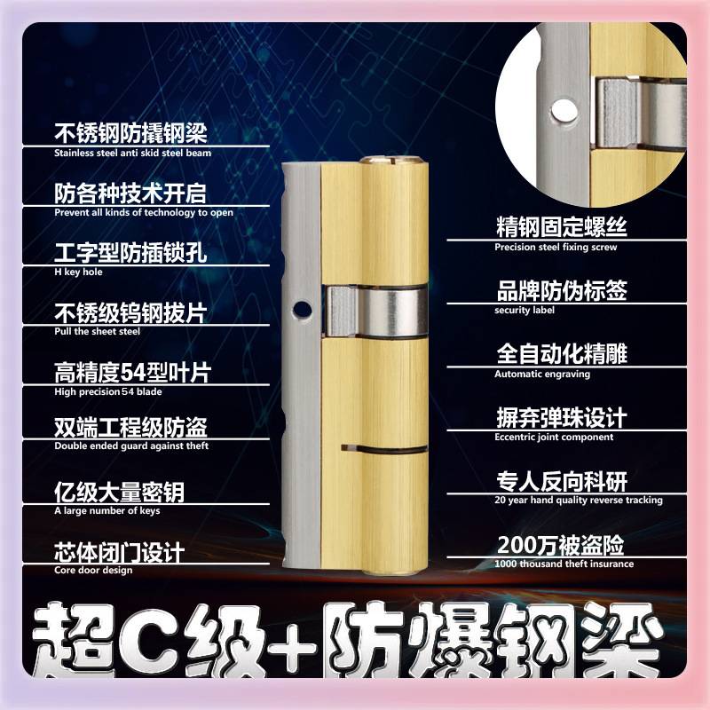 ?【】超C级防盗门锁芯 全铜54型页片锁芯通用型防技开