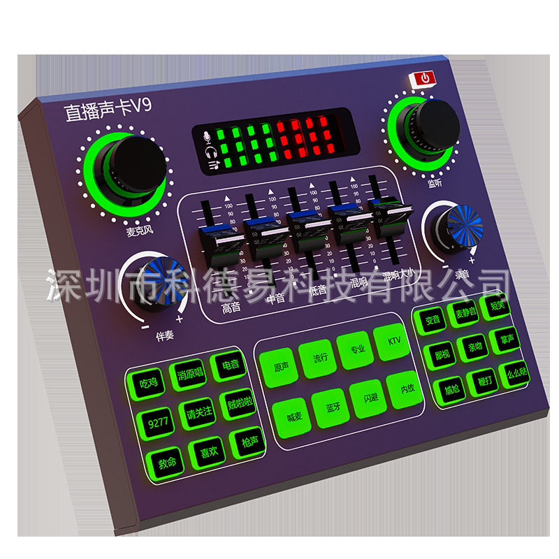 新款V9蓝牙直播声卡电容麦手机电脑通用套装主播设备全民k歌神器