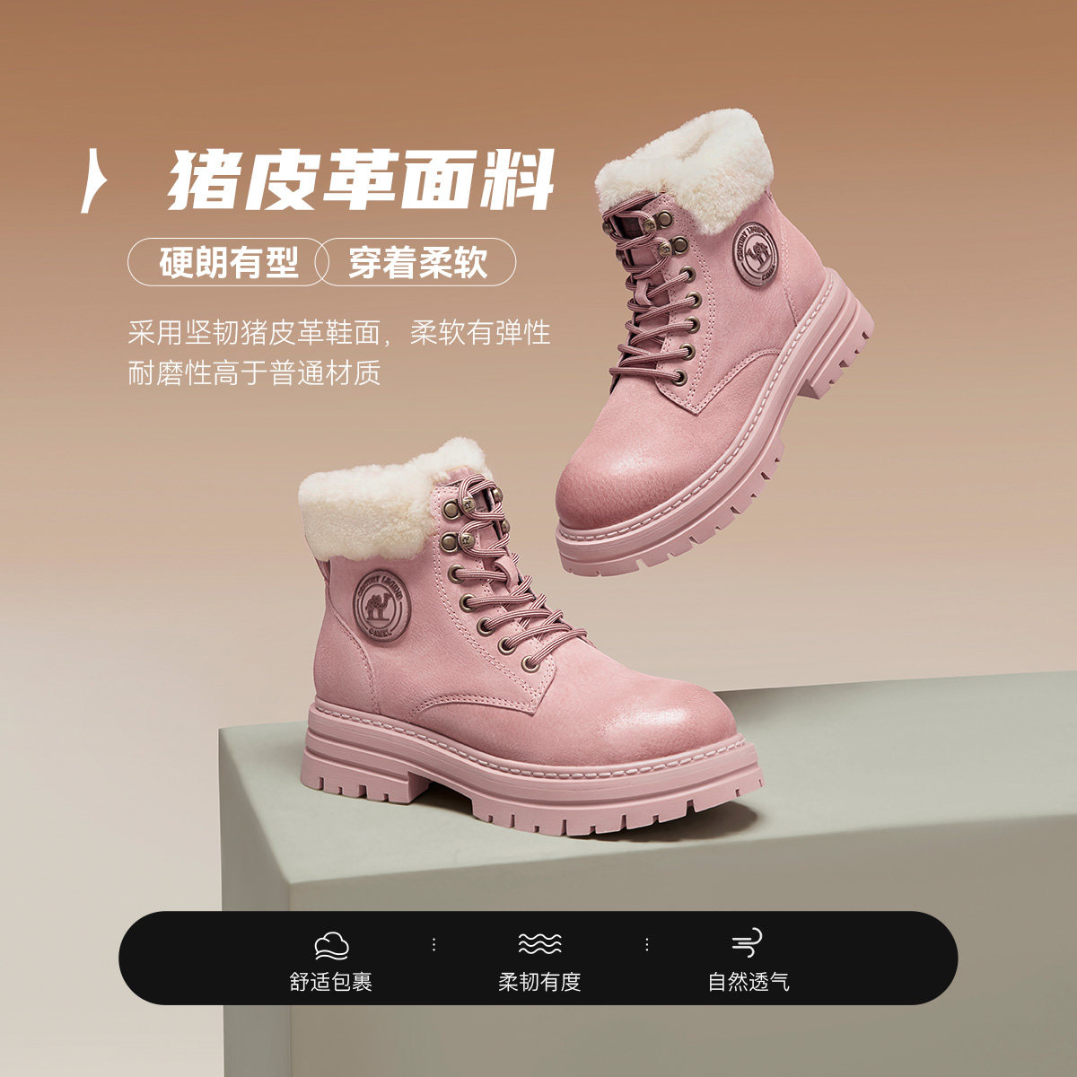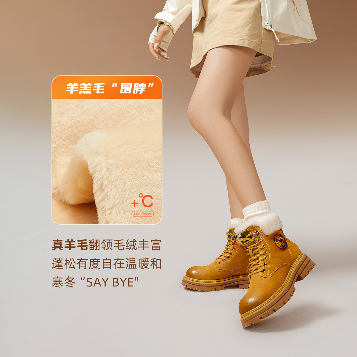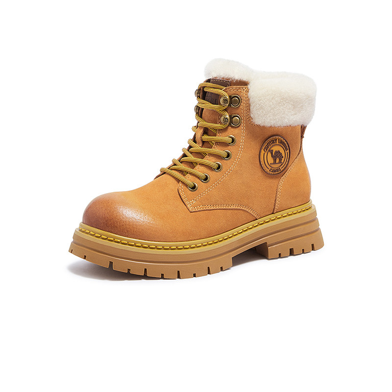 骆驼女鞋冬季加绒雪地靴保暖时尚百搭棉鞋厚底骆驼马丁靴