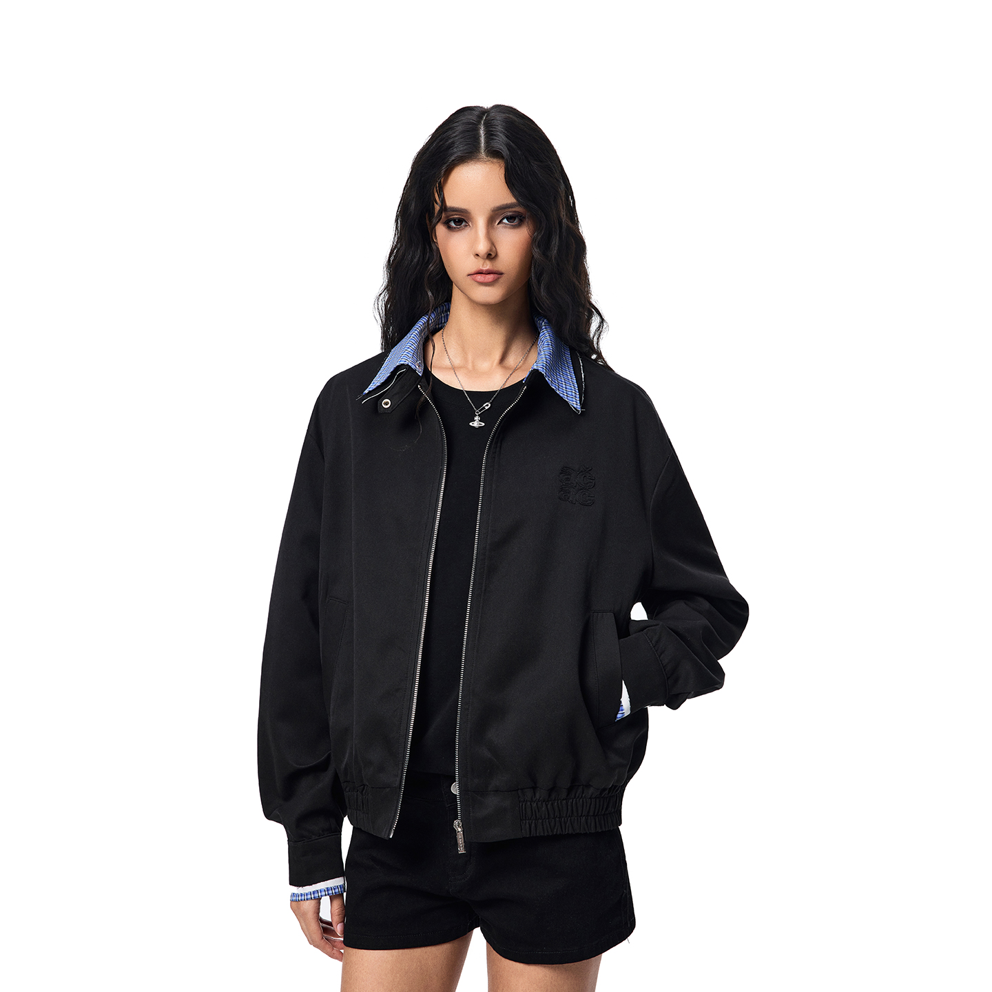 【Achock官方店】覆古夹克格子拼接短外套休闲工作服夹克上衣男女
