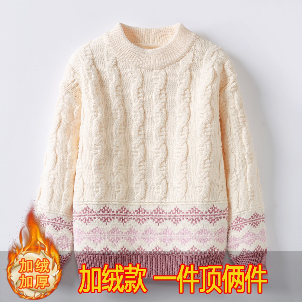 女童针织衫毛衣2025年秋冬装中大童加绒加厚儿童毛线衣女孩打底衫