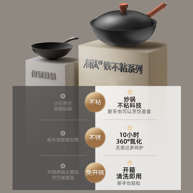 日本无涂层钛铁锅不粘锅平底家用炒菜锅免开锅燃气灶电磁炉专用0