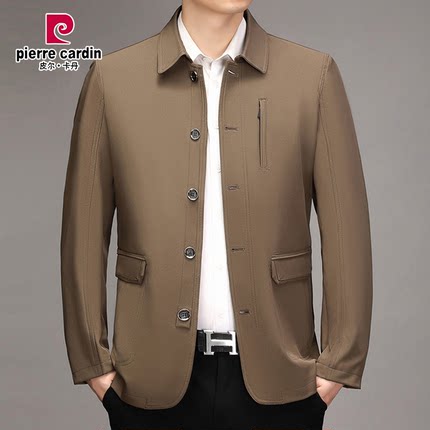 皮尔卡丹中老年男士春秋季外套2025新款休闲夹克老干部上衣爸爸装