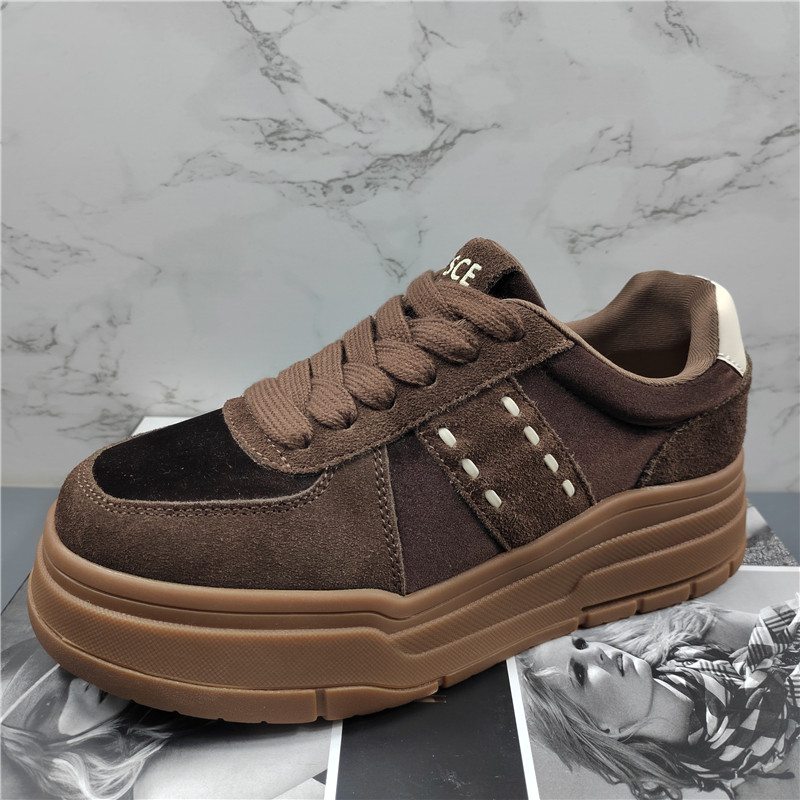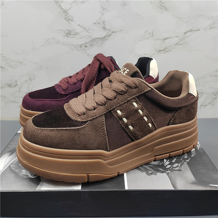 商场同款磨砂真皮德训鞋女2025秋季新款百搭厚底复古运动休闲板鞋