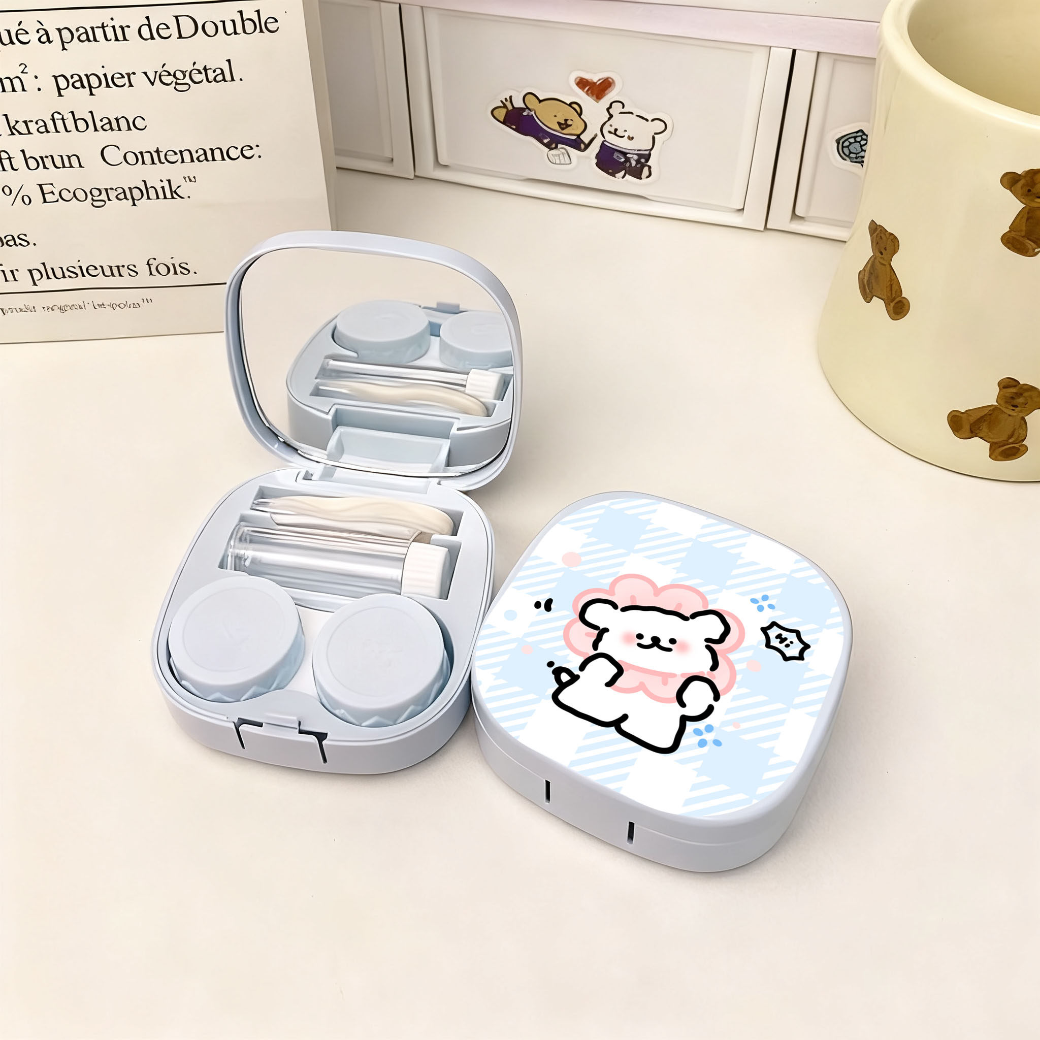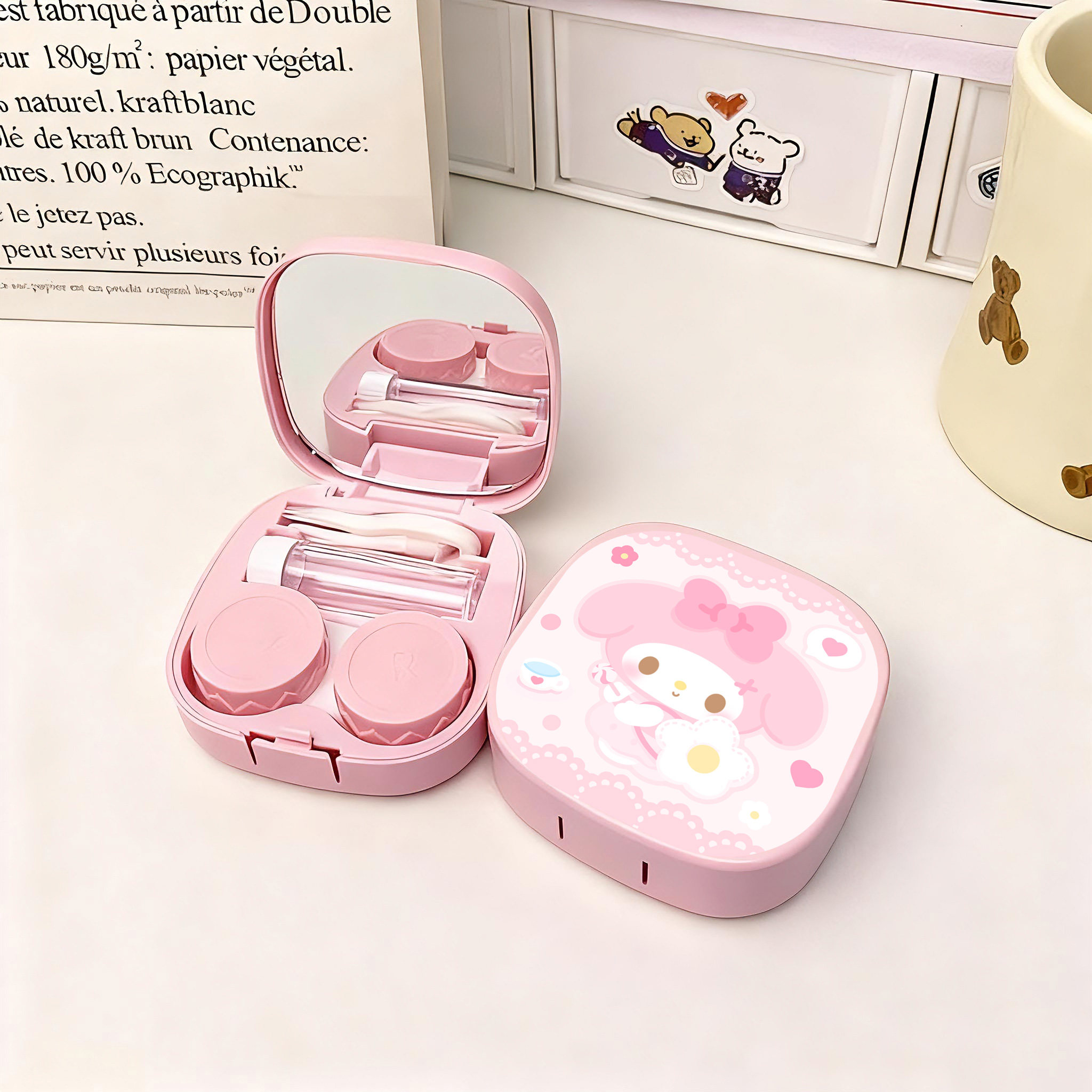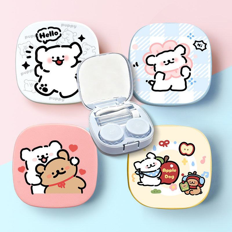 隐形眼镜盒子卡通美瞳盒收纳盒高级感便携护理盒伴侣盒可爱双联盒