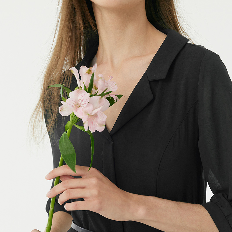 送丝巾醋酸通勤歌莉娅小黑裙气质