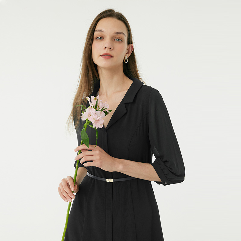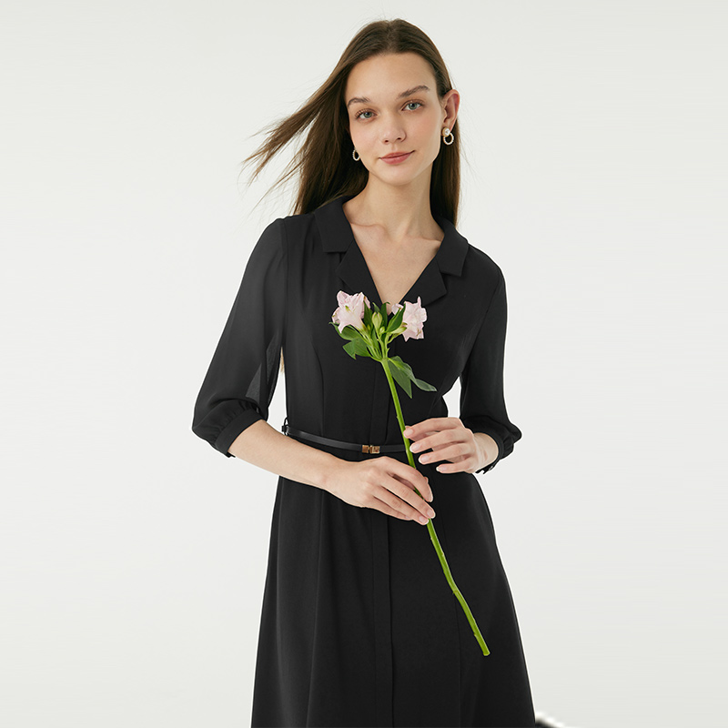 歌莉娅醋酸连衣裙通勤女神范小黑裙高级感气质显瘦裙子117C4K180