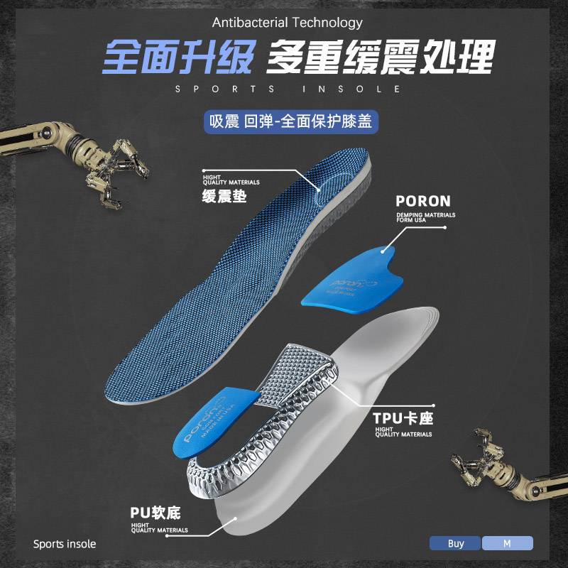 乒乓球鞋鞋垫poron男款运动气垫减震美津浓高弹女足弓支撑运动鞋