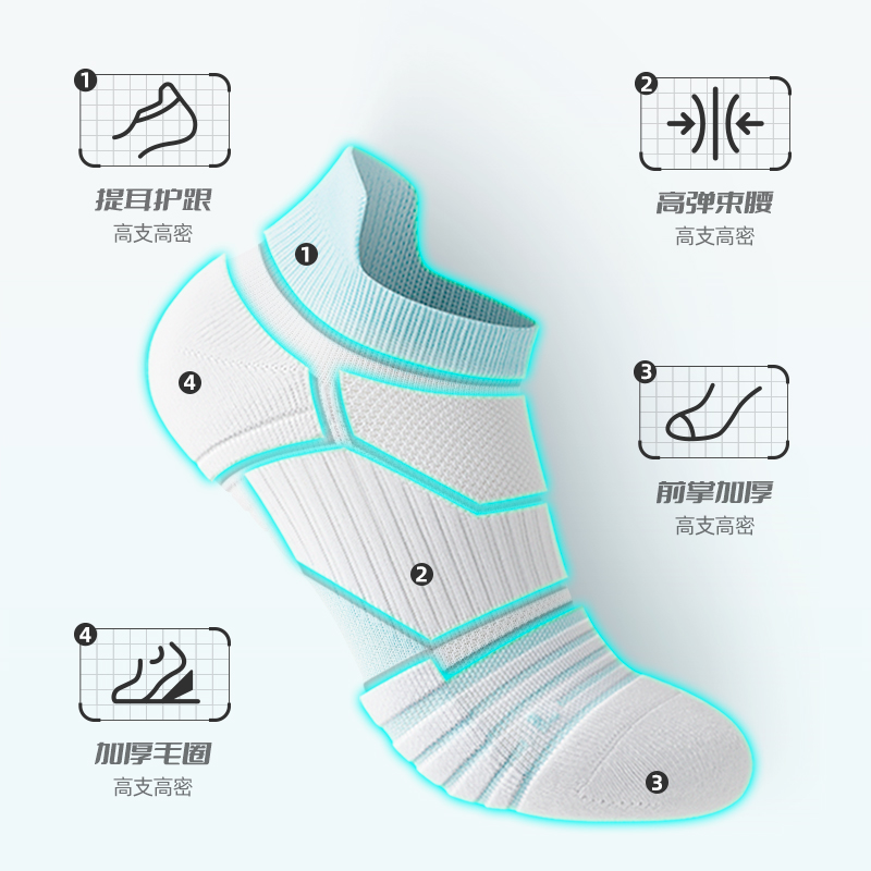 【专业运动女短袜】加厚毛巾底