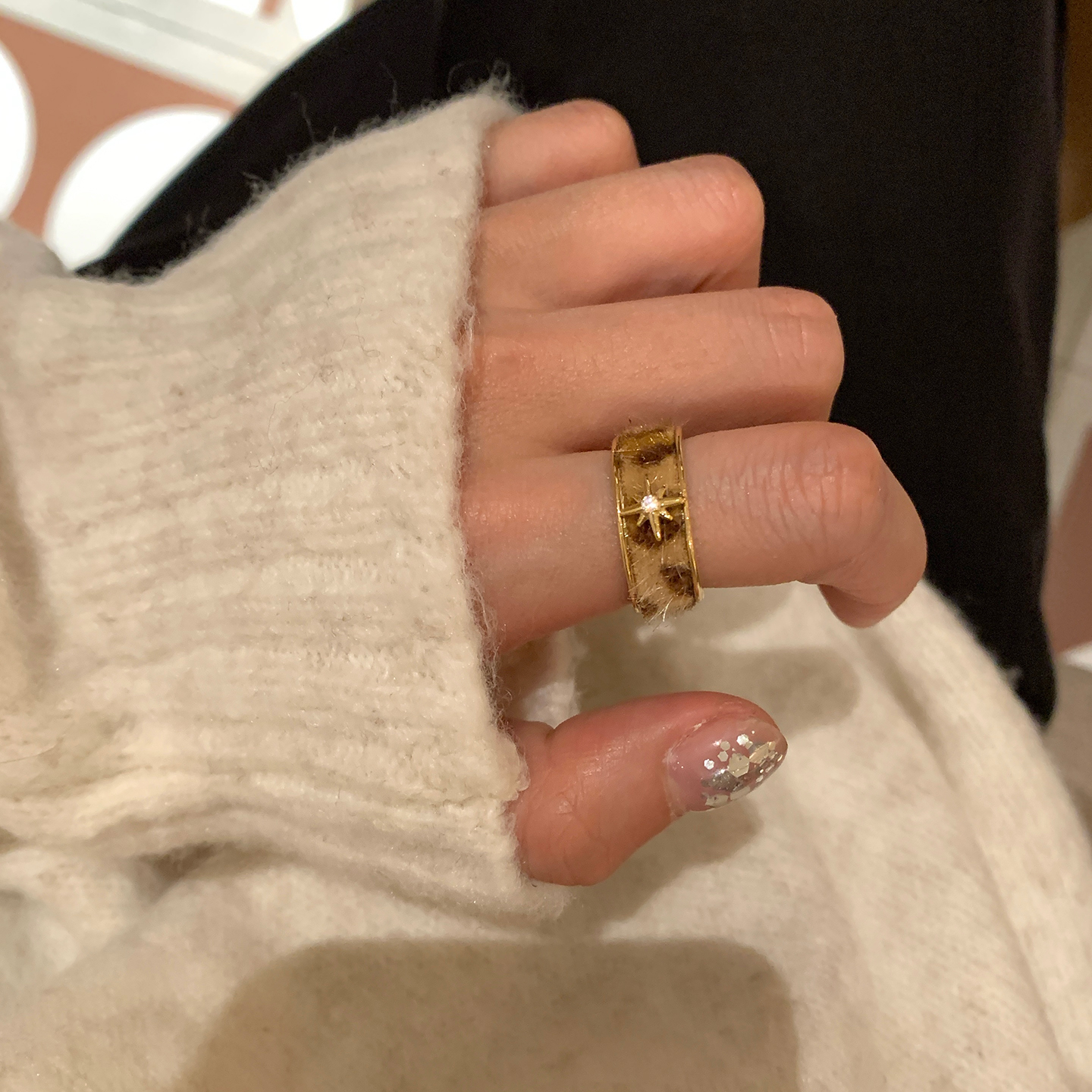 复古闪锆豹纹植绒戒指女轻奢小众设计高级感食指戒开口戒指环配饰