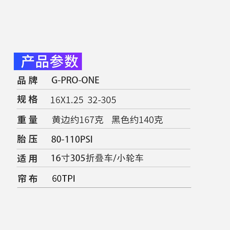 gproone黄边外胎16寸305