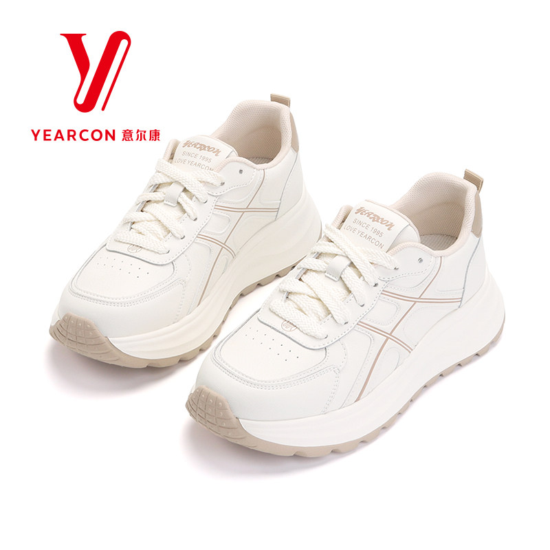 意尔康女鞋2026春季新款厚底休闲鞋白色运动鞋大码舒适百搭透气鞋